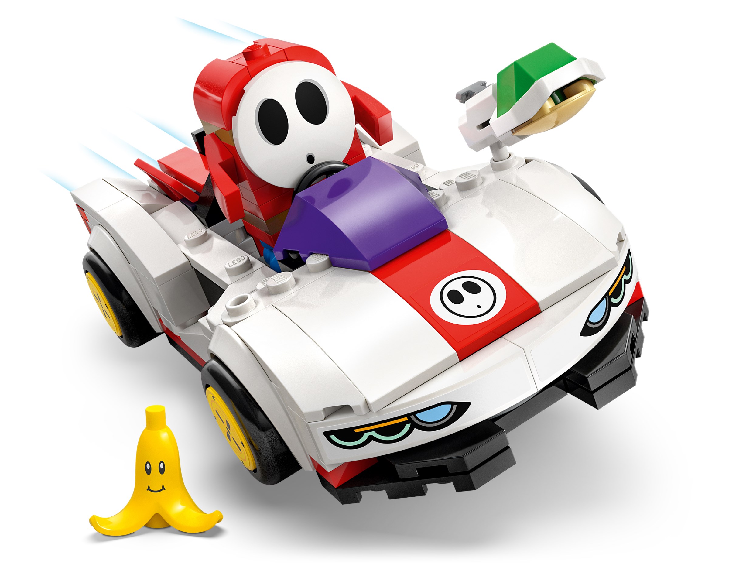 Drive, drift, glide, launch shells and more with this LEGO Super Mario: Mario Kart toy building set for kids (72045). A fun birthday gift idea for boys, girls and any gamers aged 7 years old and over, the set features a Shy Guy figure and a brick-built recreation of a P-Wing with a shell-launching function, Normal Wheels and a detachable Plane Glider. There is also a Banana element to throw at rival karts!