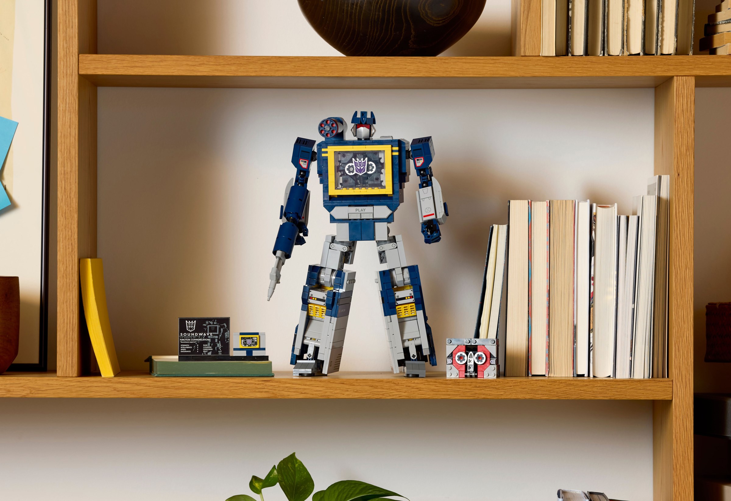 Create a captivating centrepiece or surprise a loved one with this LEGO Icons Transformers: Soundwave (10358) home and office decor building kit, designed for adults and fans of the epic sci-fi film series. Build a detailed LEGO replica of the iconic Decepticon robot action figure, along with his trusted companions Ravage and Laserbeak.