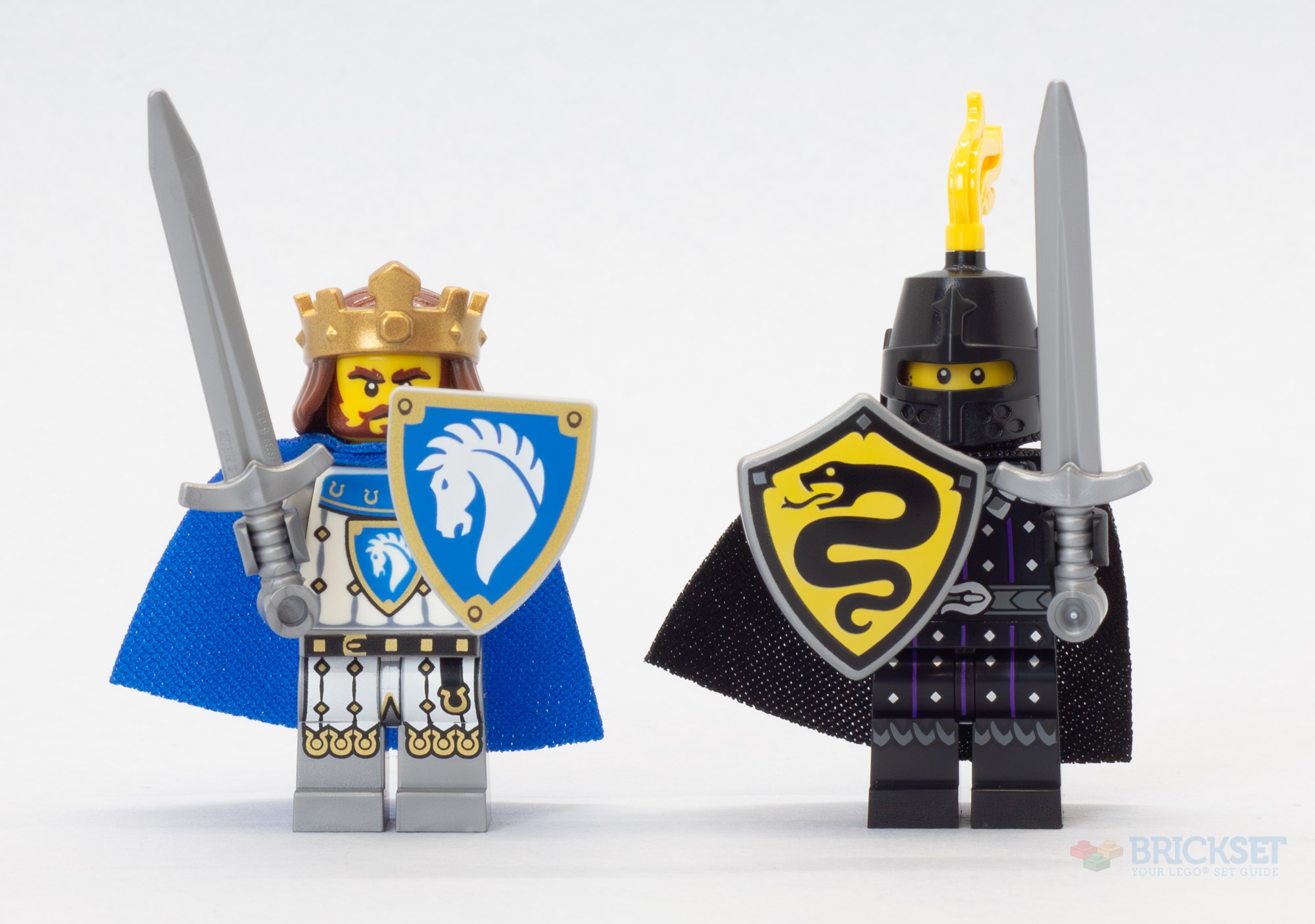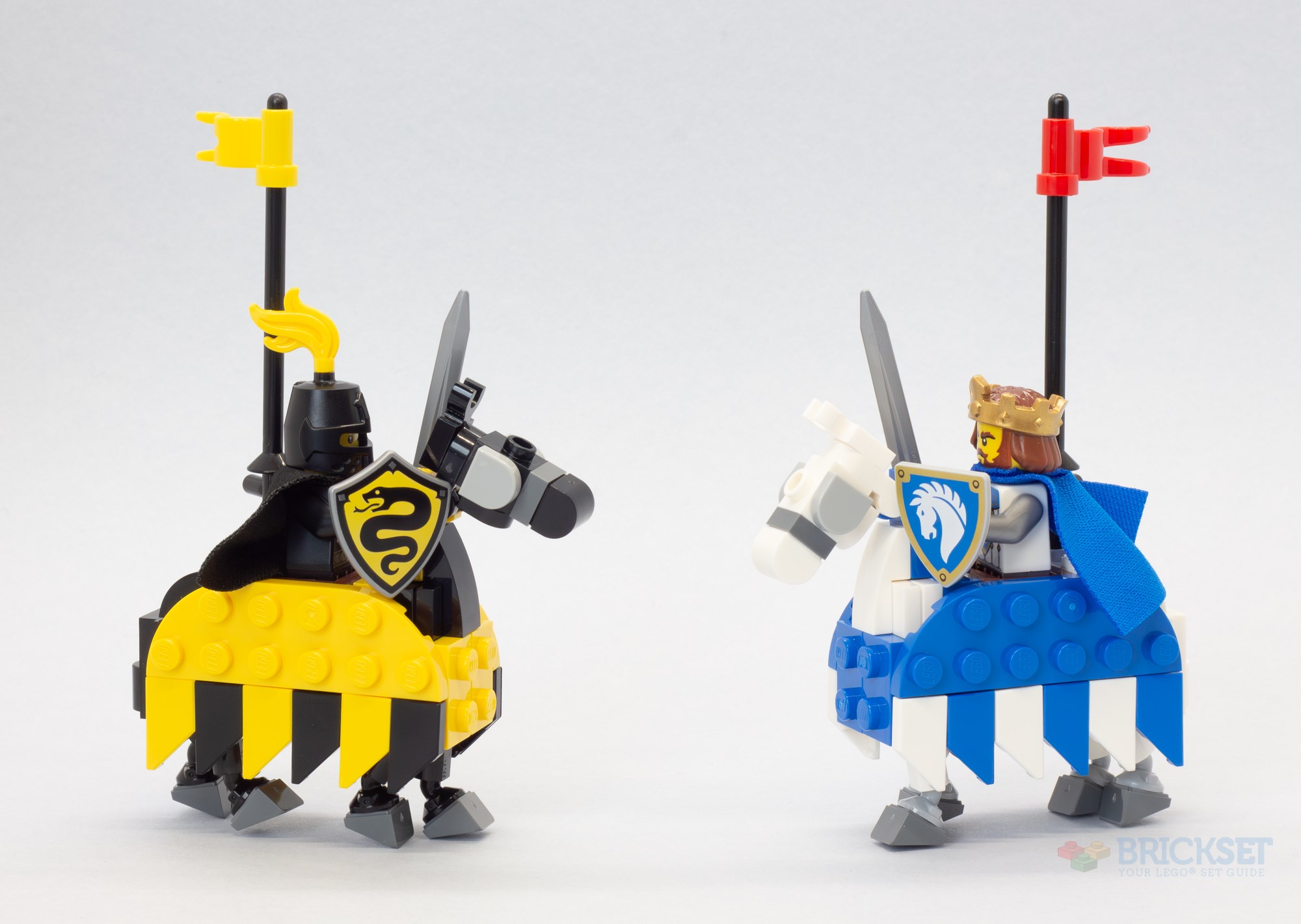 The way the horses are constructed leaves a gap in the centre the perfect size for a minifigure to stand in, with their legs hidden behind the horses' coverings. With the King and the Serpent Knight astride their stallions, they both look very ready for a joust!