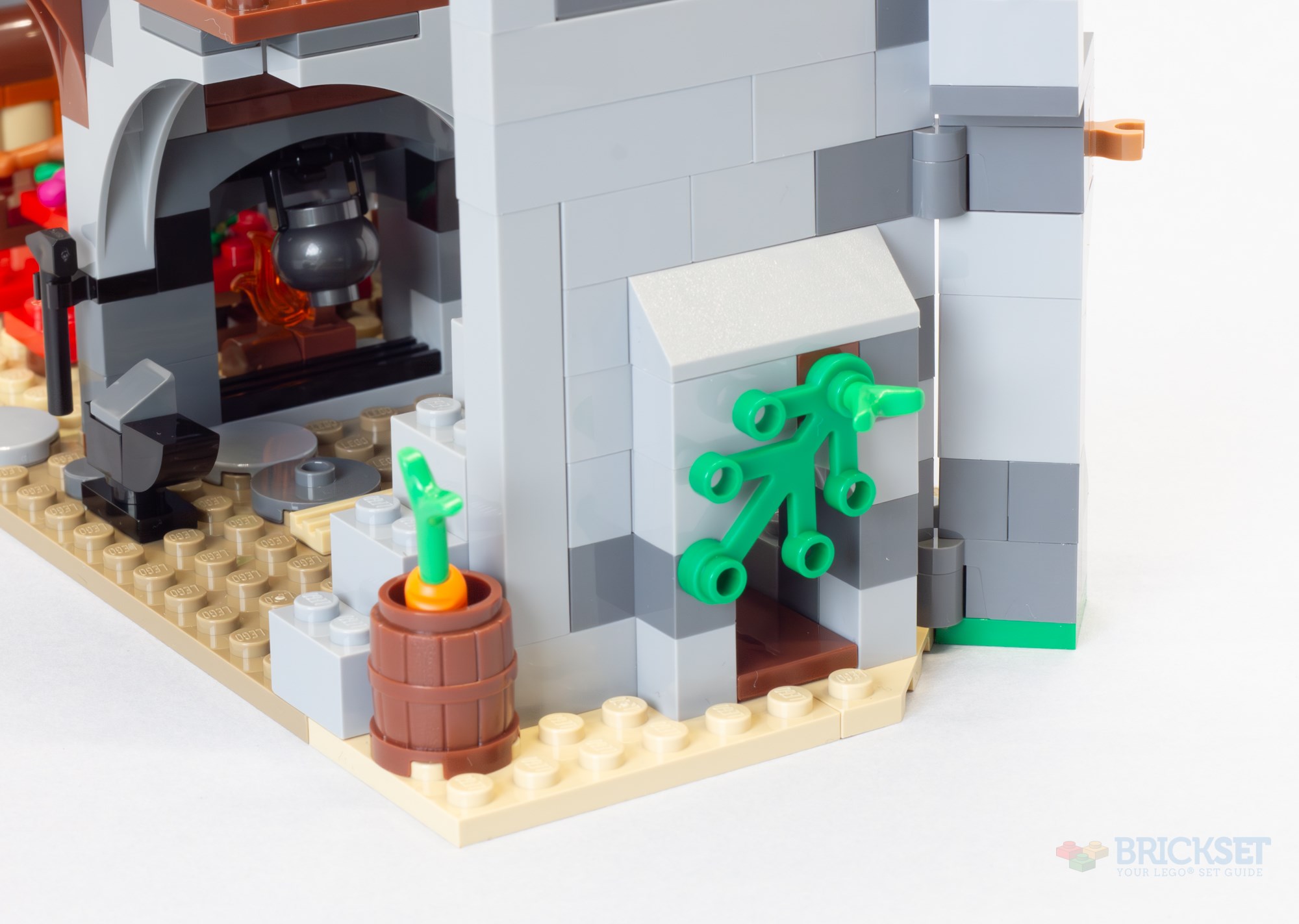This set seems to pay homage to several past iconic sets. The main build gives a strong nod to 6074 Black Falcon's Fortress. The wattle and daub room in the back right corner of the castle is a close match in style and location to a similar structure in the Black Falcon's Fortress. The B set is the closest match and strongly resembles 10223 Kingdoms Joust. The C set is the most distinct of the three, but still has similarities with the classic 7189 Mill Village Raid. Had there been a brickbuilt goat, the allusion would have been certain.