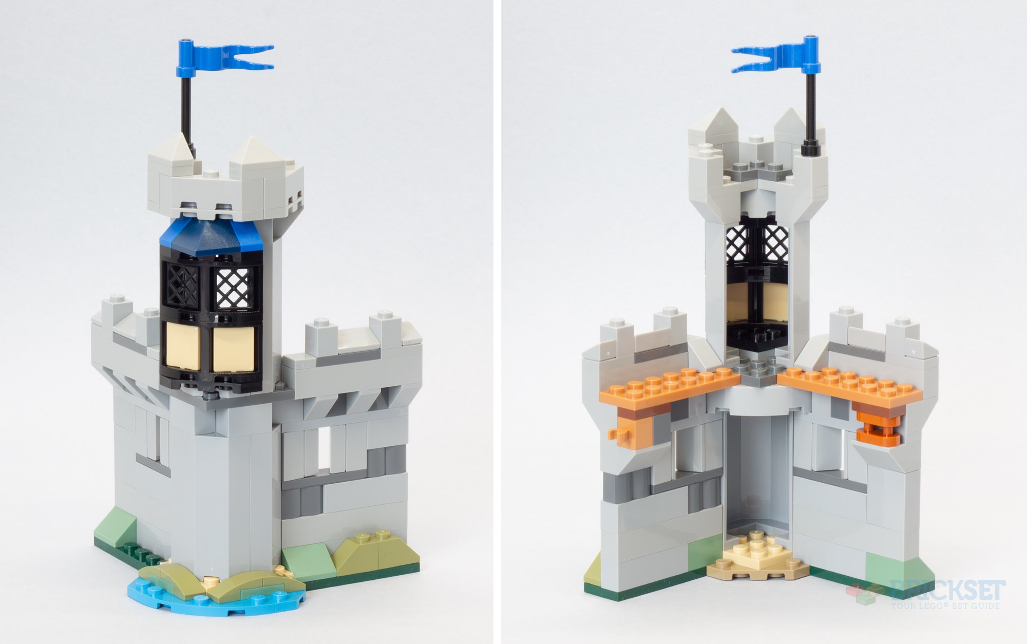 However, the biggest issue I have with this otherwise really nice set is the fact that once you turn it around to the "back" it looks like half the castle is missing. Unlike 31120, which made a complete, enclosed castle, this looks like a cannon battle blew off the back half! Something's not right here, and it will be very interesting to see if the two alternate builds will make a more complete, enclosed castle when all three are connected together.