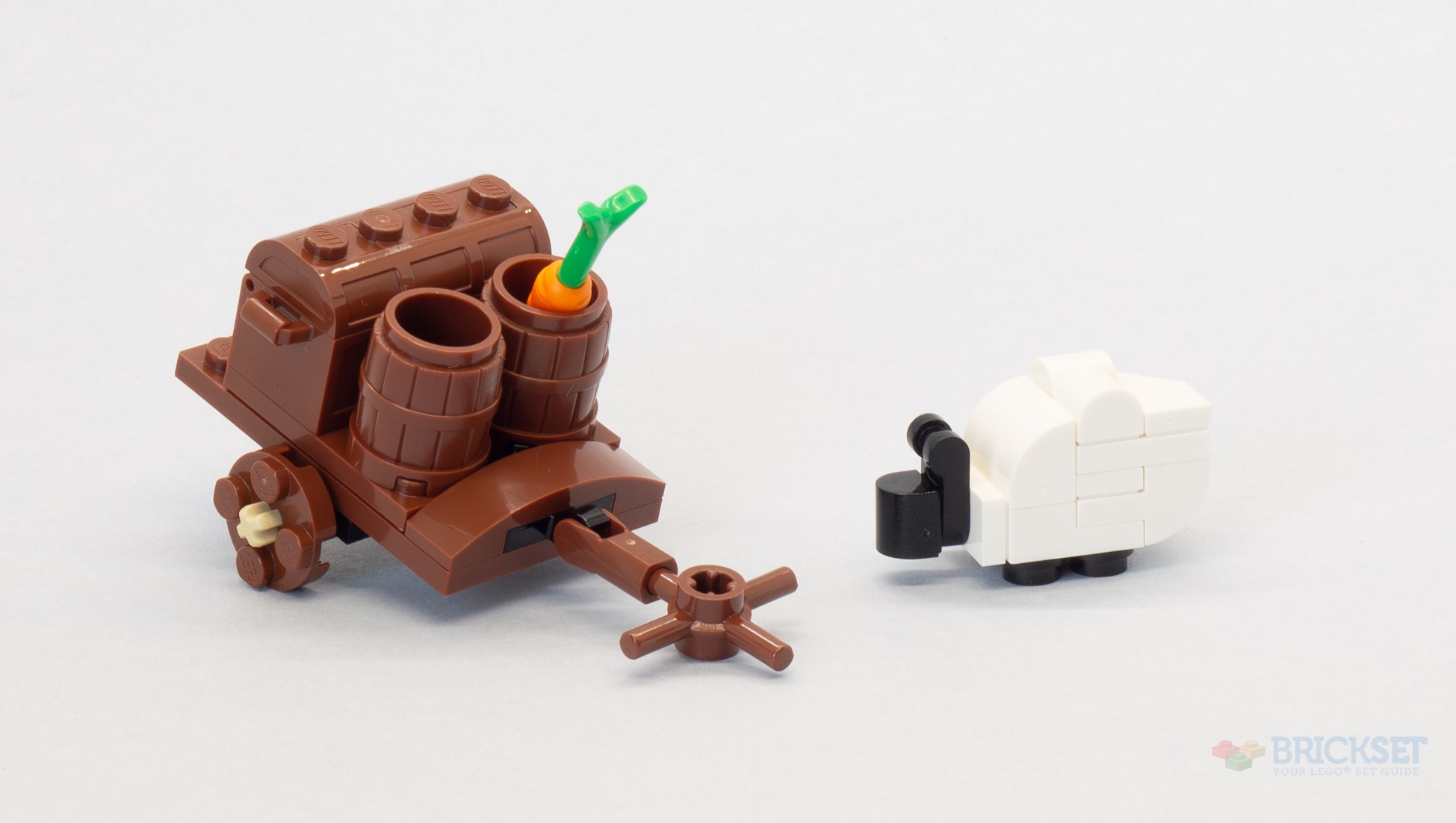 Two small but cute accessories for the scene are also provided—a handcart carrying a chest and a couple of barrels, and a rather indistinct sheep!
