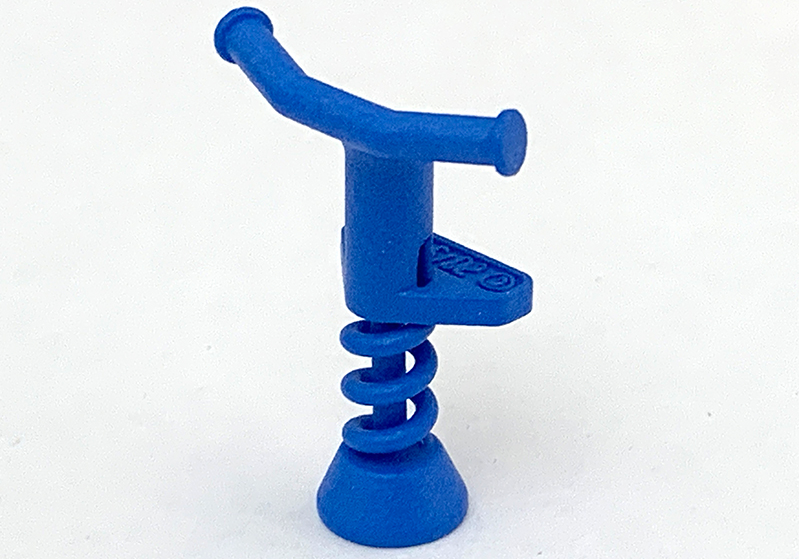 These 3D Printed Minifigure Pogo Sticks were available as a supporter bonus in the crowdfunding campaign for the book "The Secret Life of LEGO Bricks". The stick/spring compresses.