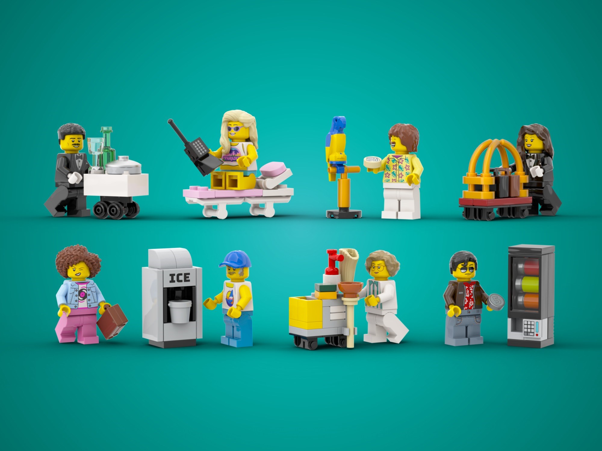 Another source of inspiration is one of my favourite figures from Series 17 of the Collectable Minifigures line: the Yuppie. An Ocean Drive hotel would be the perfect setting for this figure, so I decided to give the model an '80s vibe. I automatically associate the style of the 1980s with Miami, making it a fitting theme. Additionally, I'm a big fan of '80s music, which served as a great musical source of inspiration while building the model.