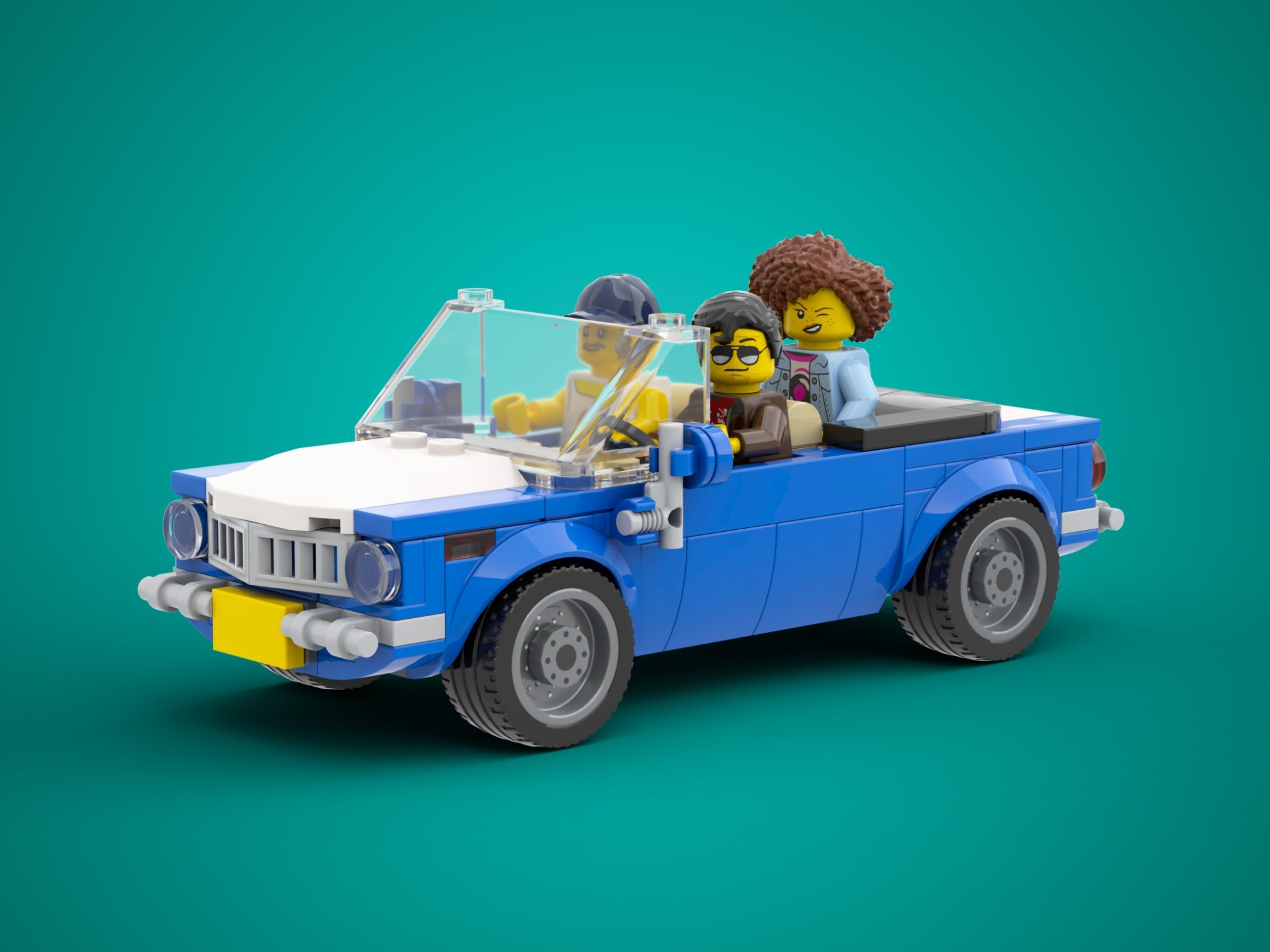 For me, minifigures and detailed mini-builds really bring a model to life, so I aimed to include as many fitting characters and interesting sub-models as possible. The model contains a total of eight minifigures, each with their own unique personality. Additionally, I included a convertible muscle car that seats three minifigures.