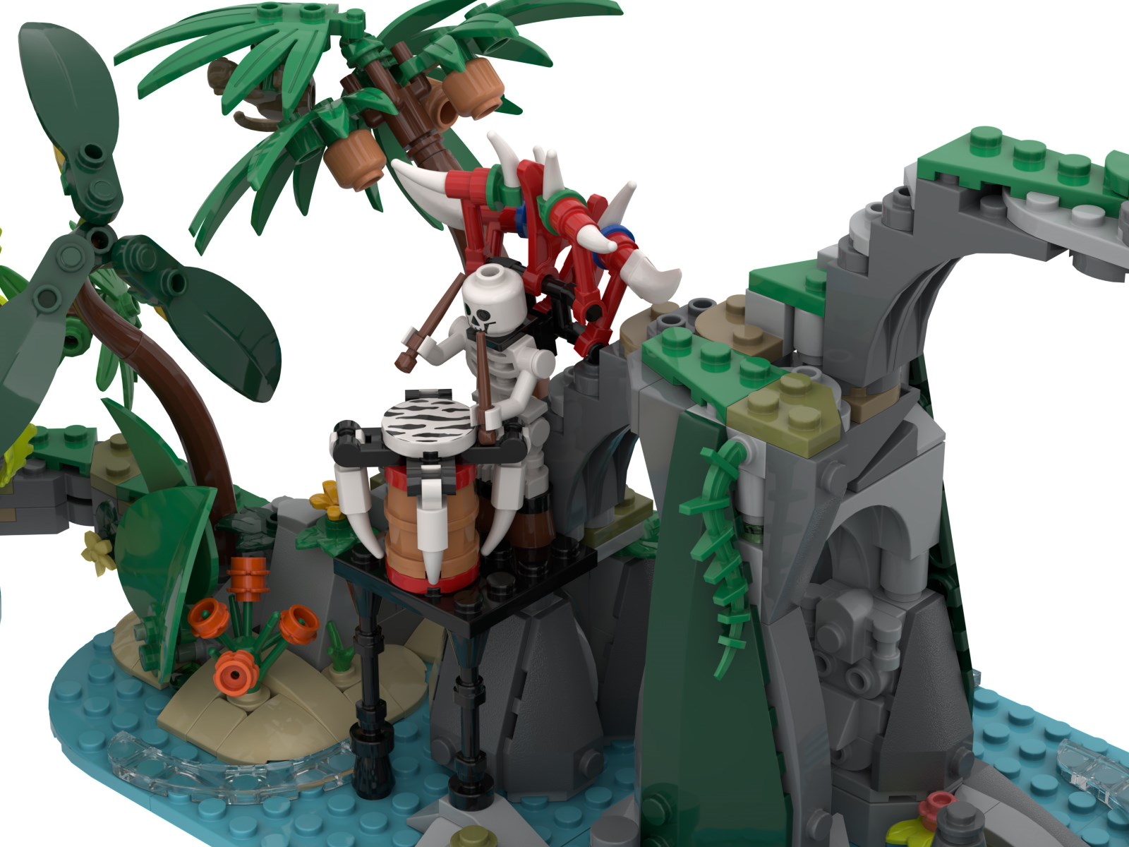 It is a fun MOC, but at 2200 parts I am guessing this would be about £180. And none of the island builds seem that substantial. In particular, the water sections are rather flat and boring. I don't think it helps having nine skeletons either, when I have plenty of cheap skeletons anyway.