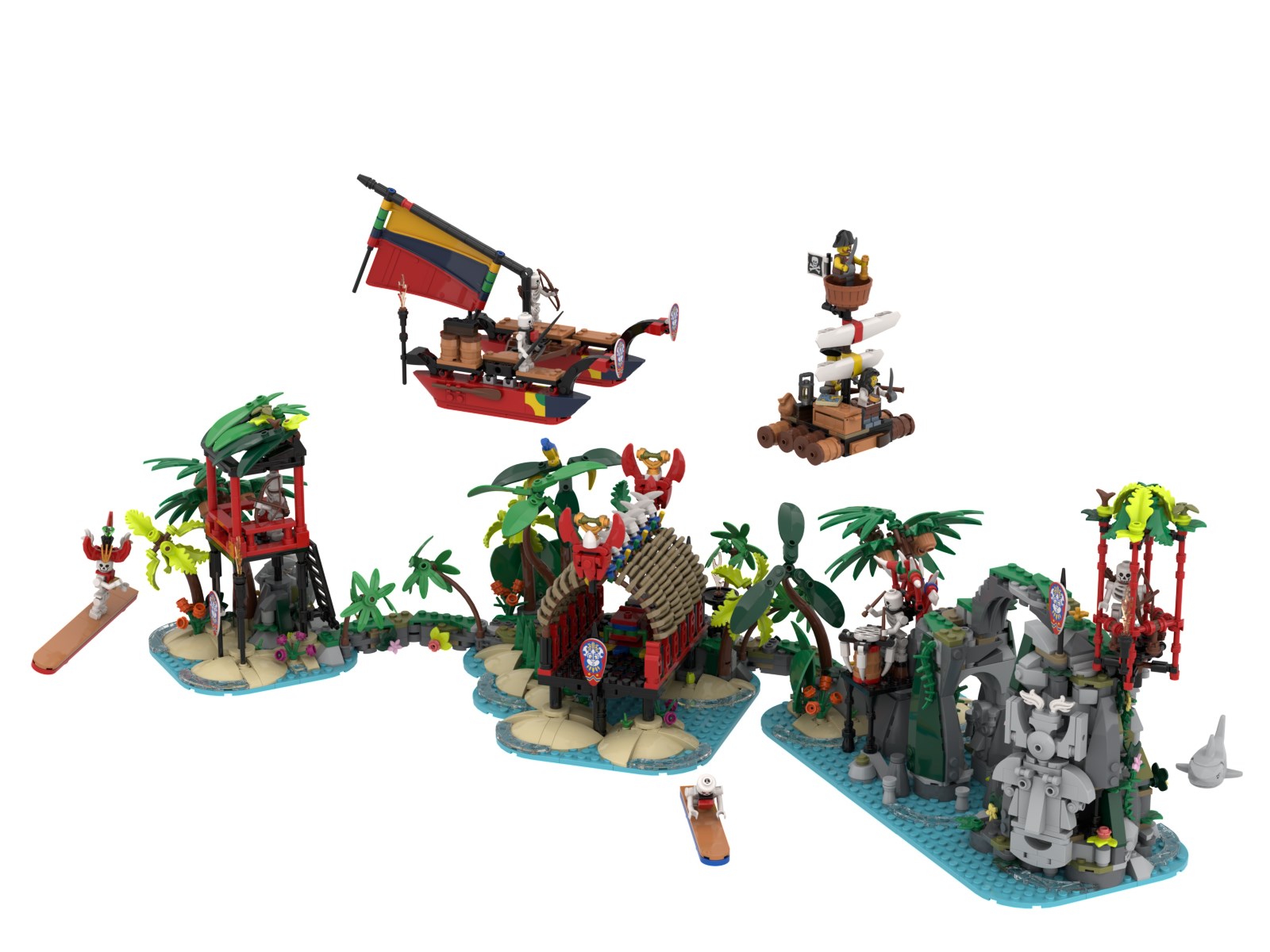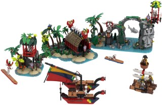 I am thrilled to share with you my latest entry into the BrickLink Designer Program, Azure Islands. For this design, I waded into the Pirate theme with a slightly different take on the original Islanders sub-theme from 1994.
