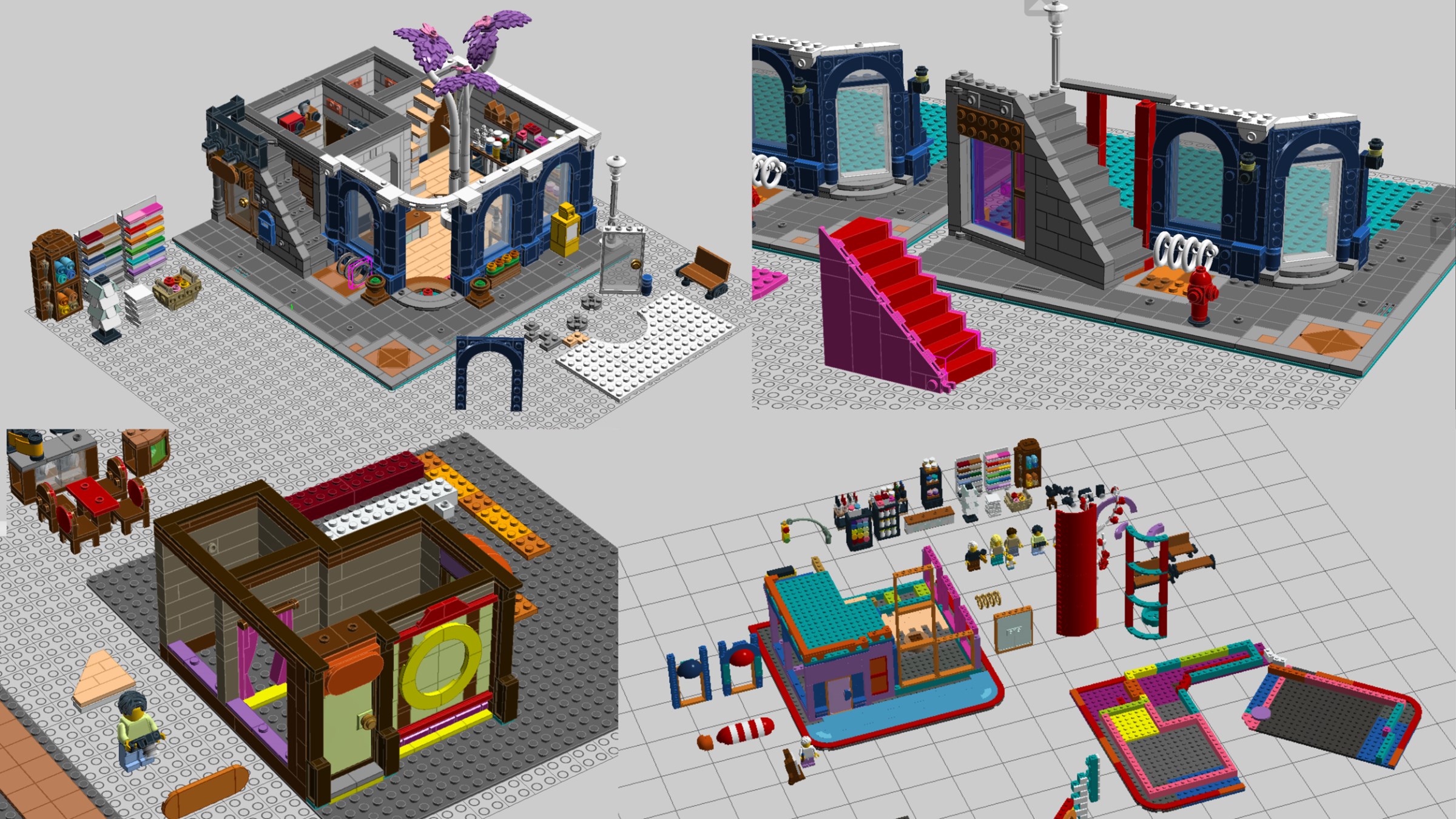 Development for this model started in 2024 during a summer trip where I visited a stationery shop with a tree in the middle. Inspired by this and the colorful environment of the store, with a desire to do another modular-style building after my Ice Cream Parlor from Series 5, it felt like a good starting point. That winter, I drew several rough sketches of the layout and experimented with a navy blue building. I always start with LEGO Digital Designer, which has always been my preference for building software.