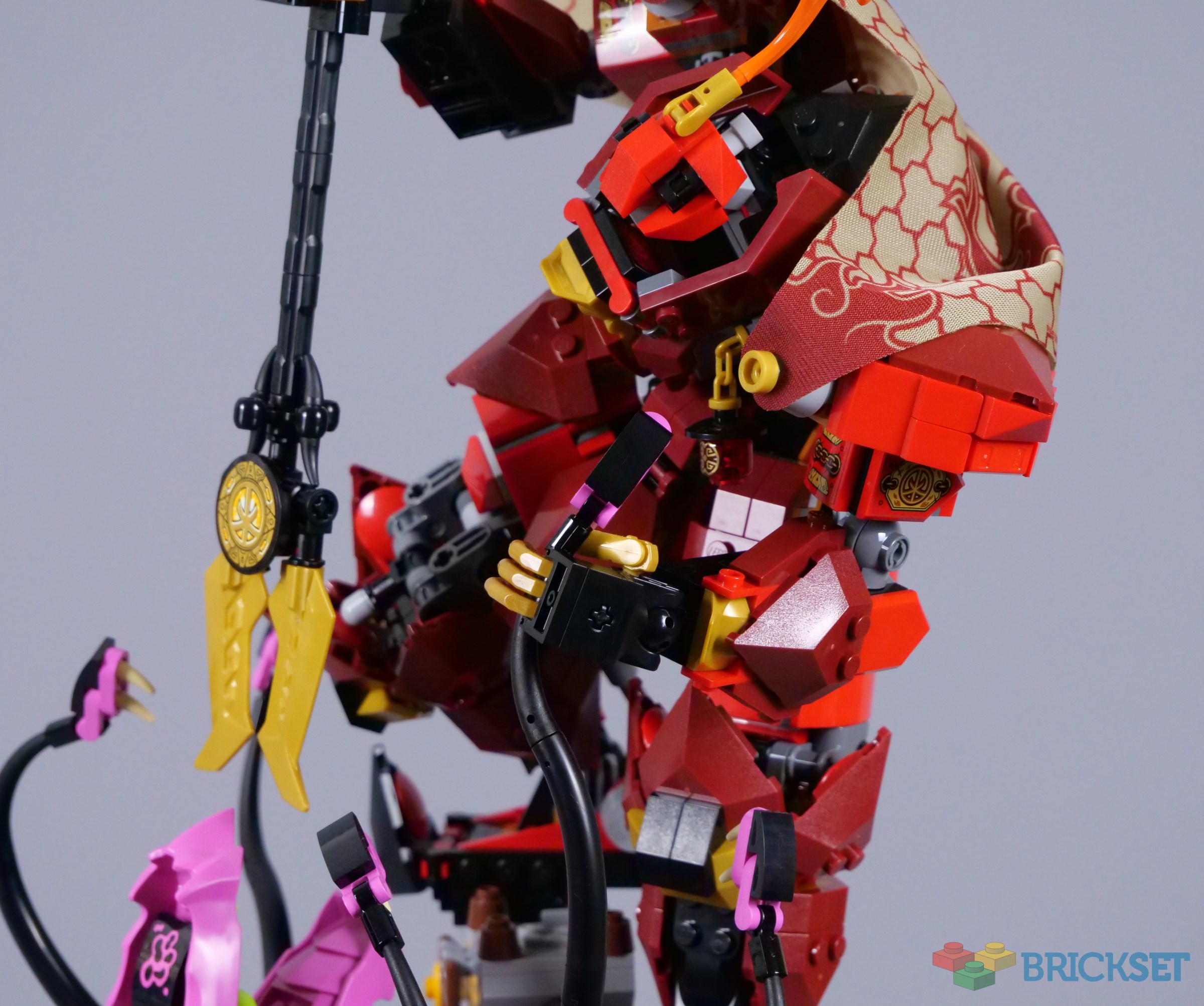 However, one common critique of the Guardian Dragon was its static design, very unusual for a NINJAGO model. This mech, by contrast, can be easily detached from its base and posed like any other. In fact, the articulation here is better than many LEGO mechs, although it looks excellent on the base as well, so this set seems to impress in all circumstances!