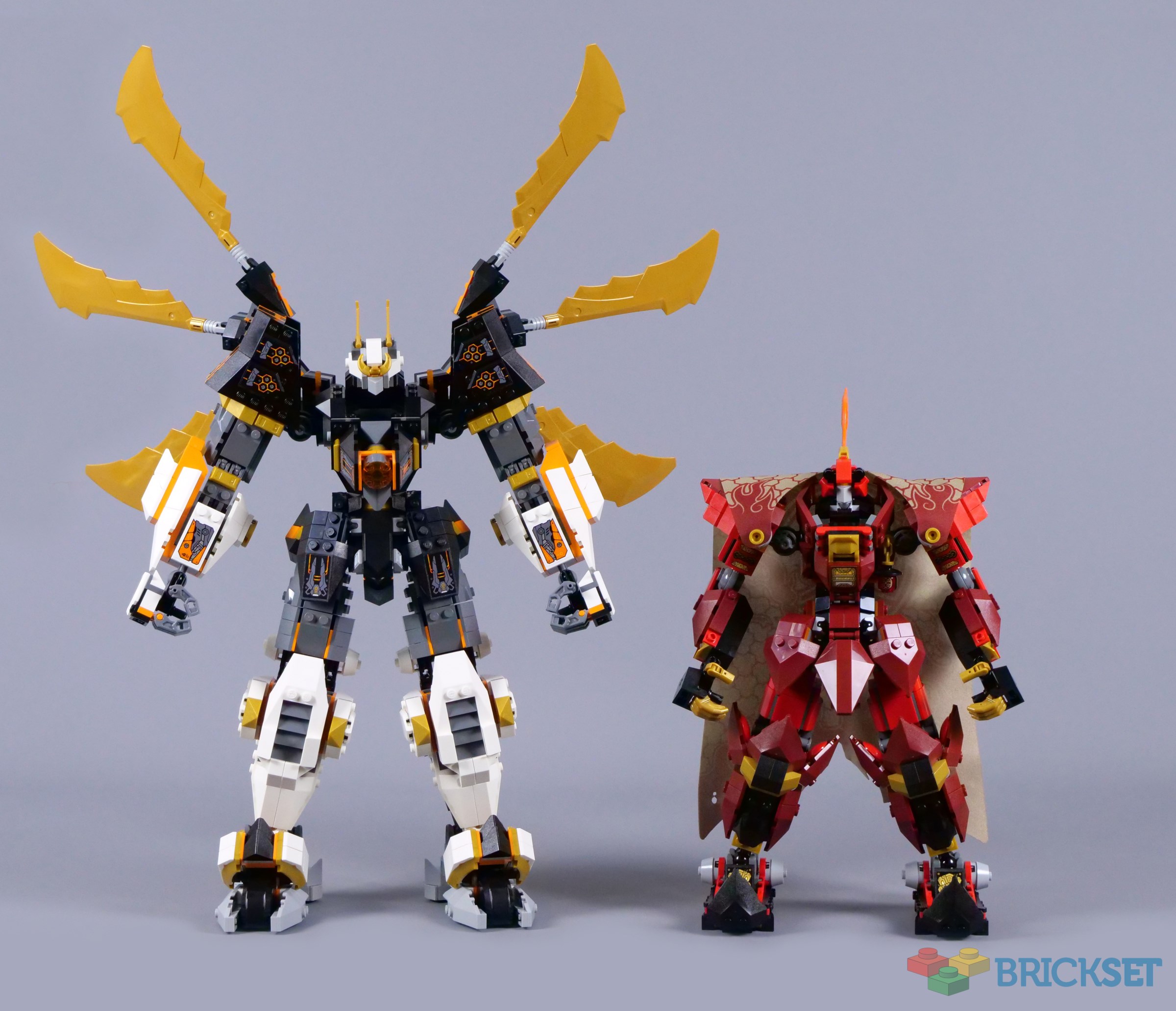 71821 Cole's Titan Dragon Mech was launched last summer, raising the standard for premium LEGO mechs going forward. This mech is much smaller than its precursor, measuring 25cm in height once removed from the base, but no less detailed. Moreover, the Fire Knight Mech looks bulkier than the Titan Dragon Mech, especially its legs.