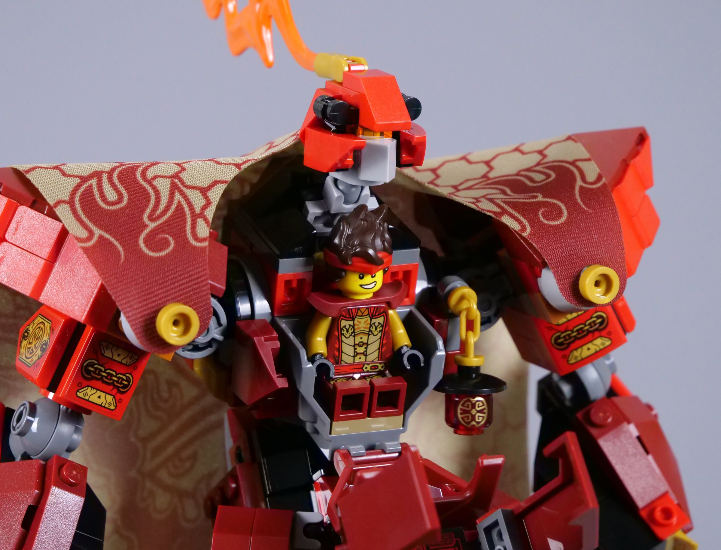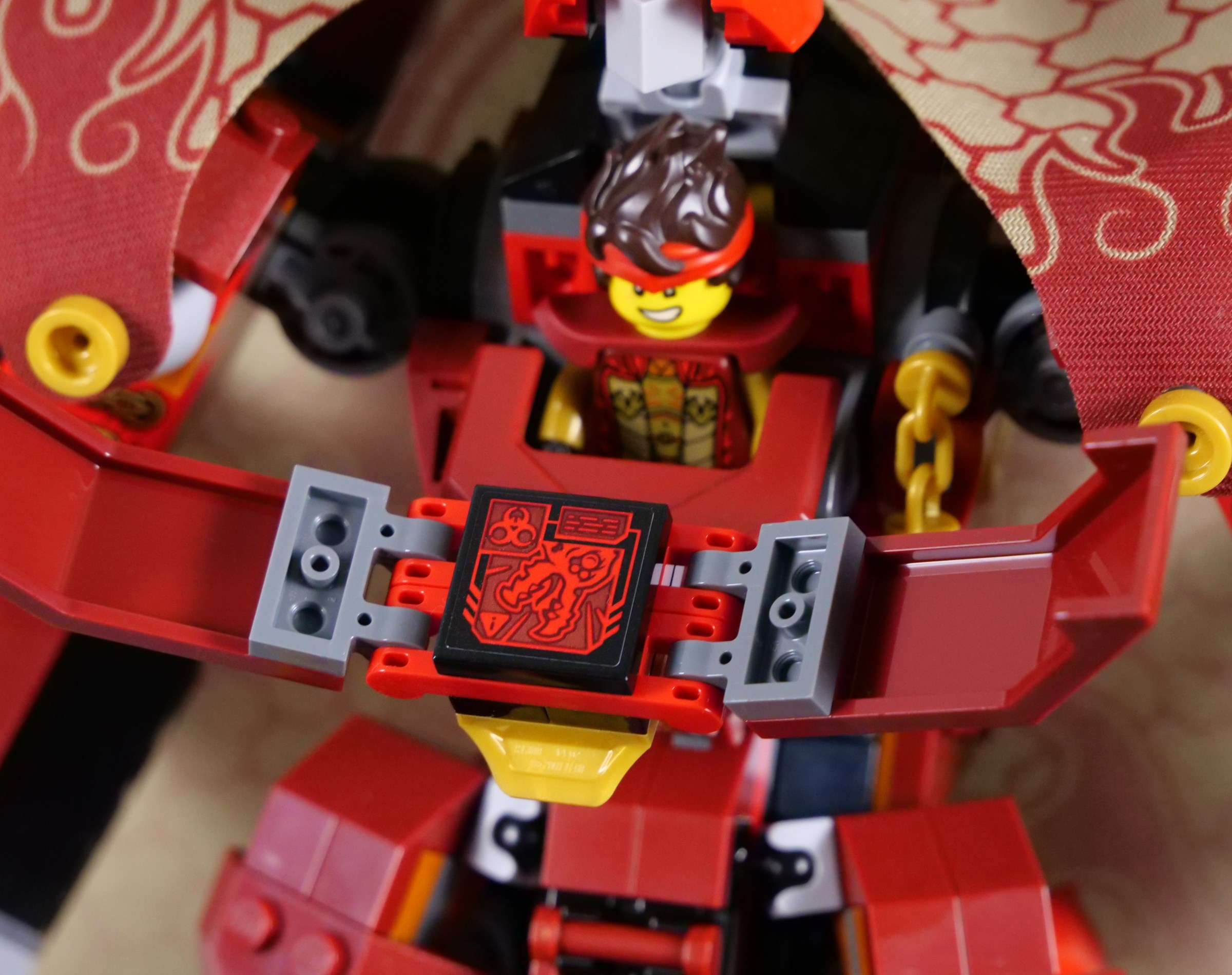 There is ample room for Kai to pilot the mech, which is never shown in NINJAGO: Monstrosity because the Fire Knight Mech is itself sentient. Even so, I like the stickered console displaying the sea monster inside. Kai's voluminous hair causes a slight issue though, restricting the head movement somewhat.
