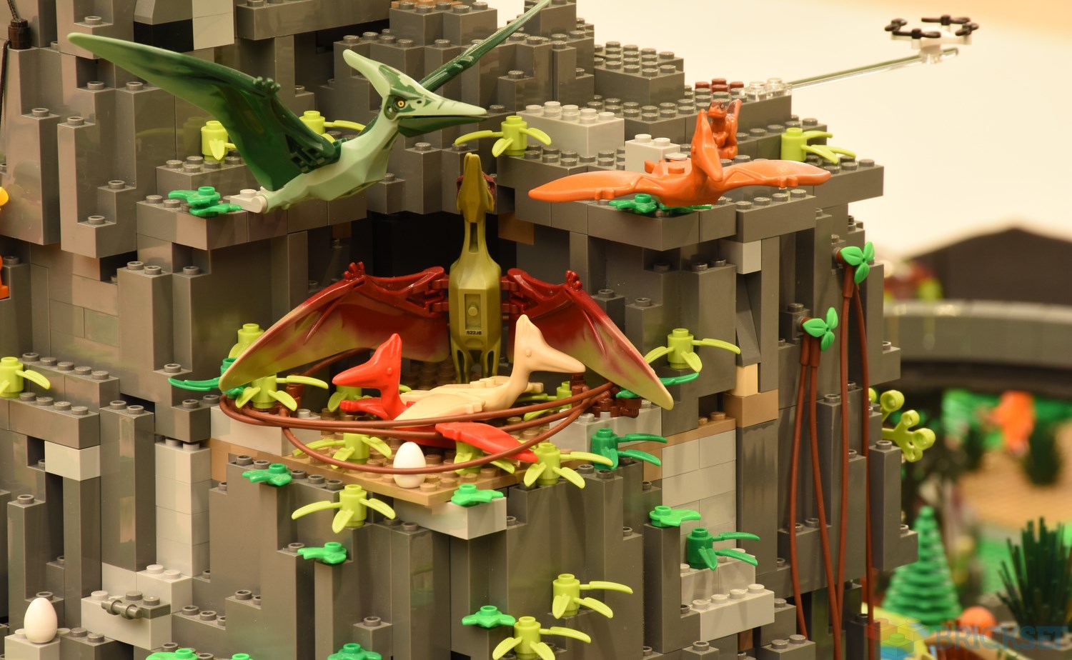DS: “Yes. There are Pteranodons up there. That was one of the ideas when I designed the mountain. To have different tiers. There is a little cave at the bottom. There is a camping area with a lookout. There is a rock climber. A Pteranodon nest. I wanted these ideas incorporated into the mountain.”