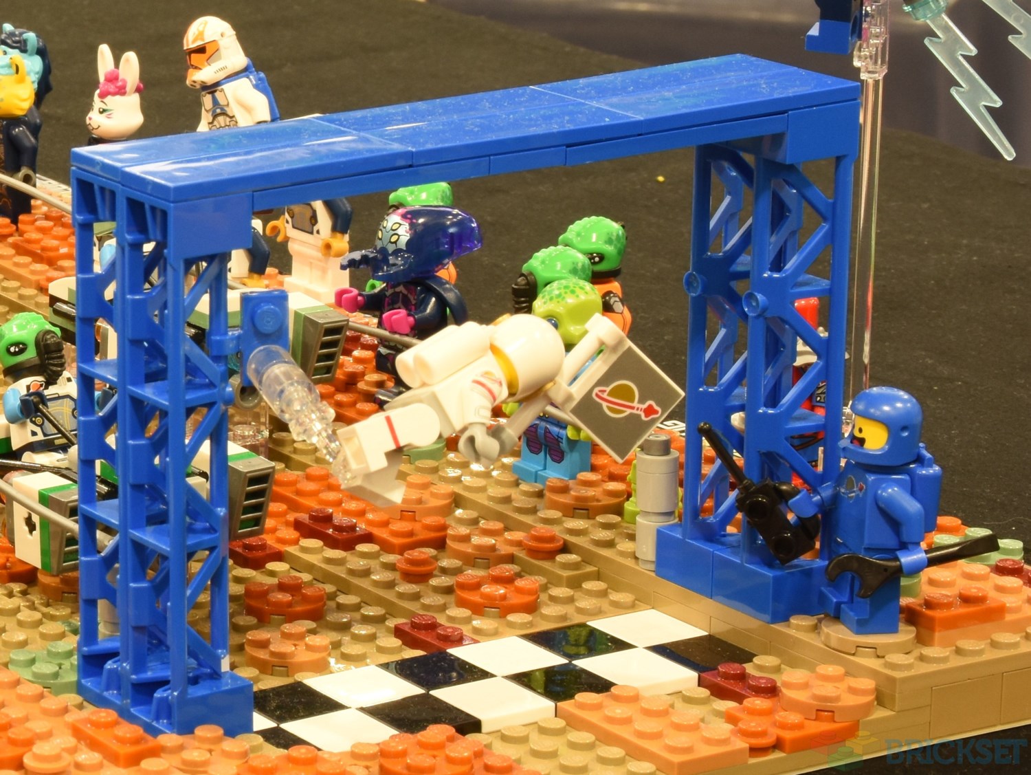 JF: “I call it the Space Race. It is made from a few modified polybags. The whole point was, I wanted a lot of minifigs that did not have the standard round head. It is meant to be off world to humans, so they are wearing space suits but everyone else doesn’t.