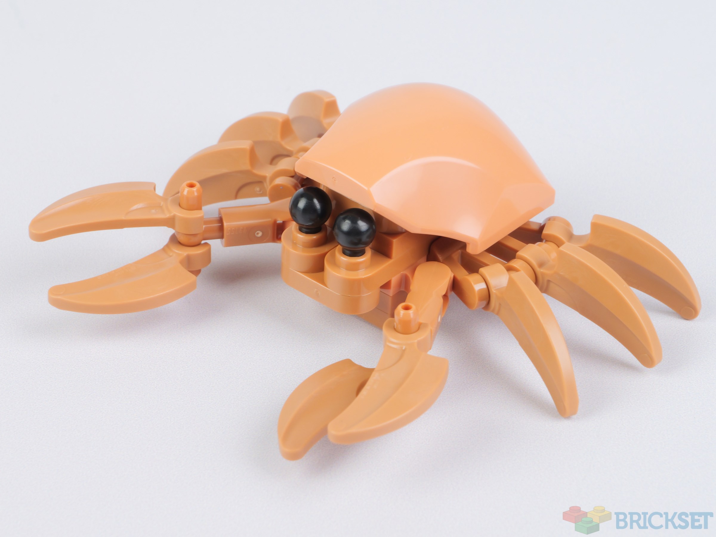 Despite being two legs short of a full set of ten (a pair of pincers and 4 pairs of walking legs) the crab looks excellent. Iron Man's mask crops up frequently in botanical sets and here it has been recoloured and used for the shell.