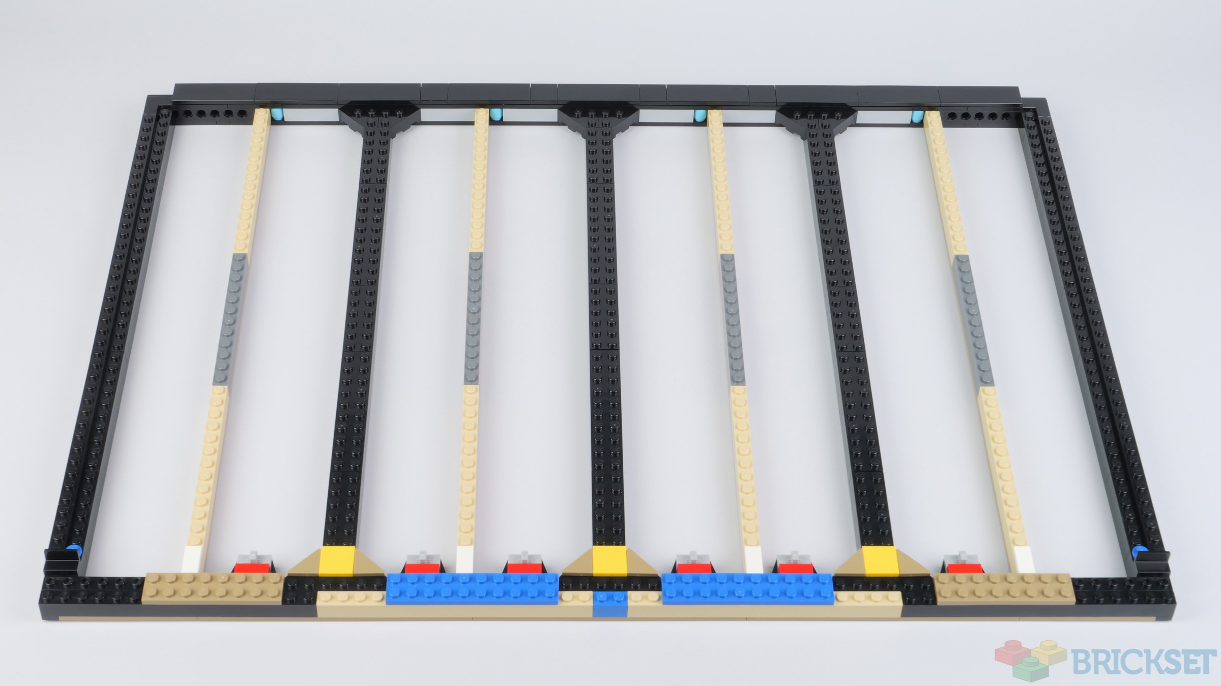 With the bulk of the aquarium fixtures completed, attention turns to the backdrop, which comprises 20 8x16 medium azure baseplates mounted on a black-bordered frame.