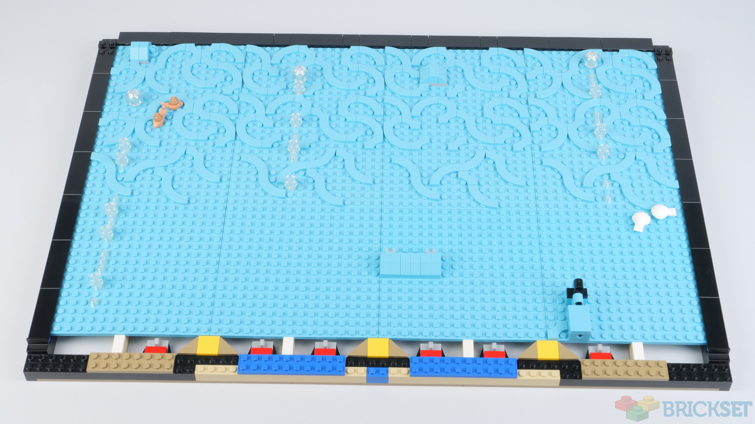 The swirly water pattern is the same on the top eight plates and the pattern repeat looks a bit obvious before the tank is populated, particularly as it ends abruptly at the sides of each plate. The instructions suggest that coming up with a pattern that looked organic using just two different parts was a challenge for the designers. I think it would have looked better if the joints of all the tiles did not align with the joints between the plates.