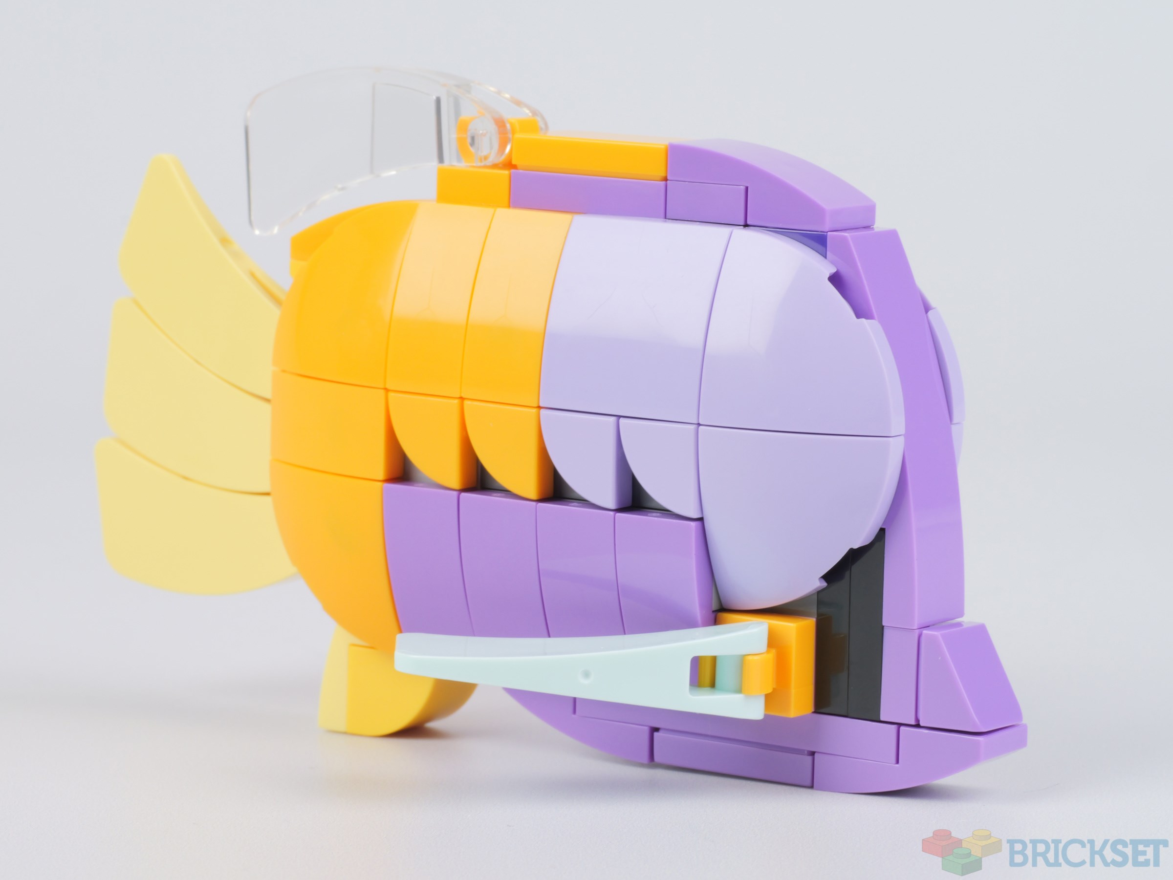 The tank is home to just four fish: two angelfish, a rainbow fish, and a dark red 'striped brickfish', native only to the imaginations of LEGO designers, according to the instructions.
