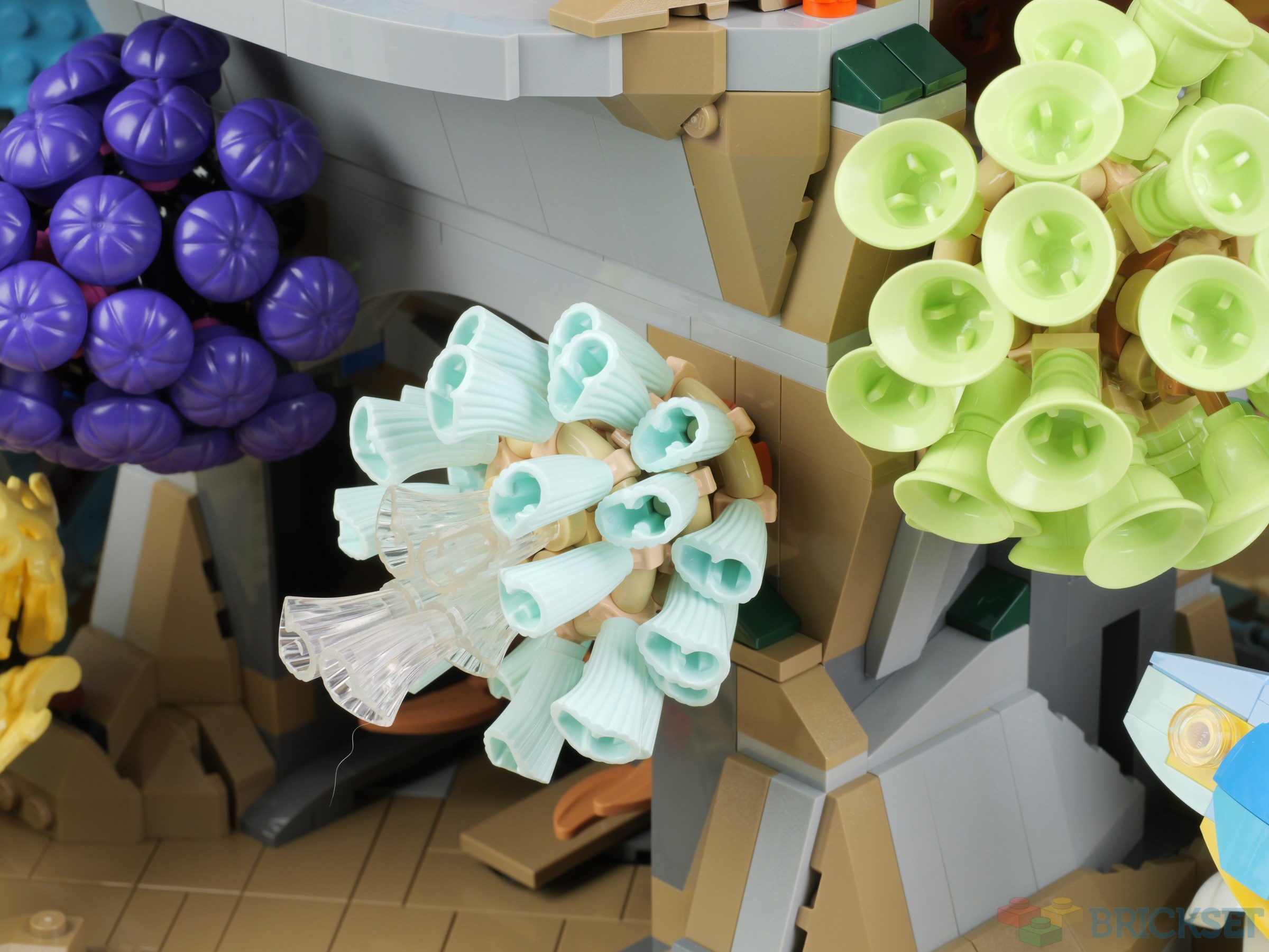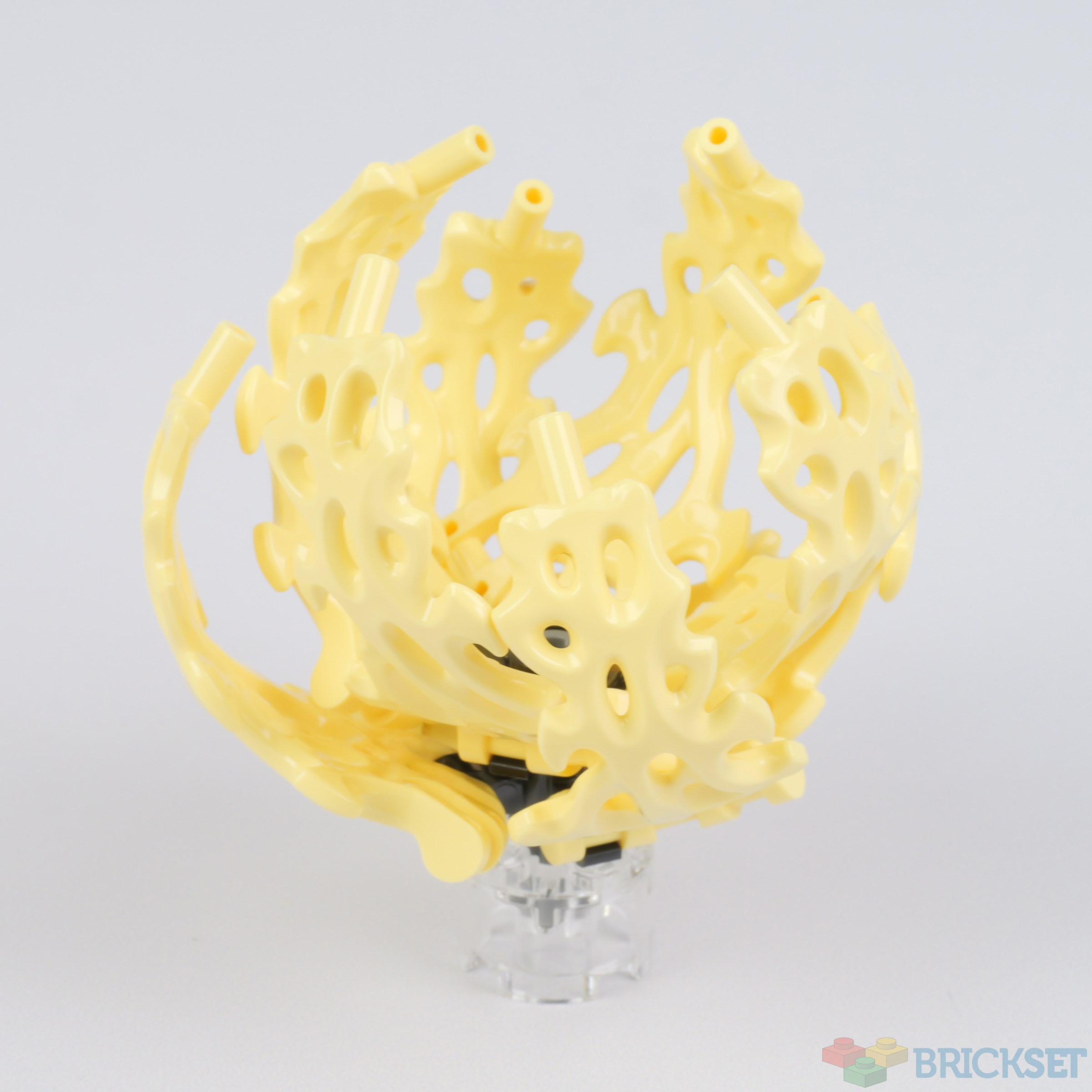 The light yellow piece used for the specimen on the left below, which resembles sea fan coral, is a Ninjago energy element, originally used to attach claws to minifigures, e.g. this one.
