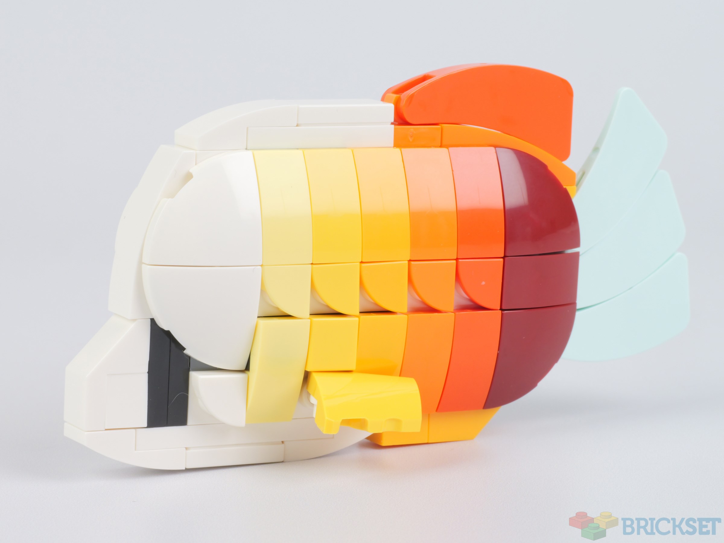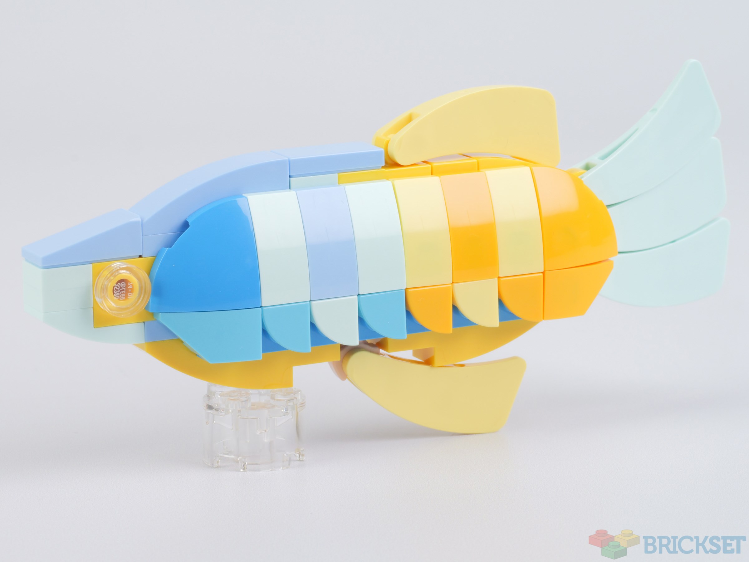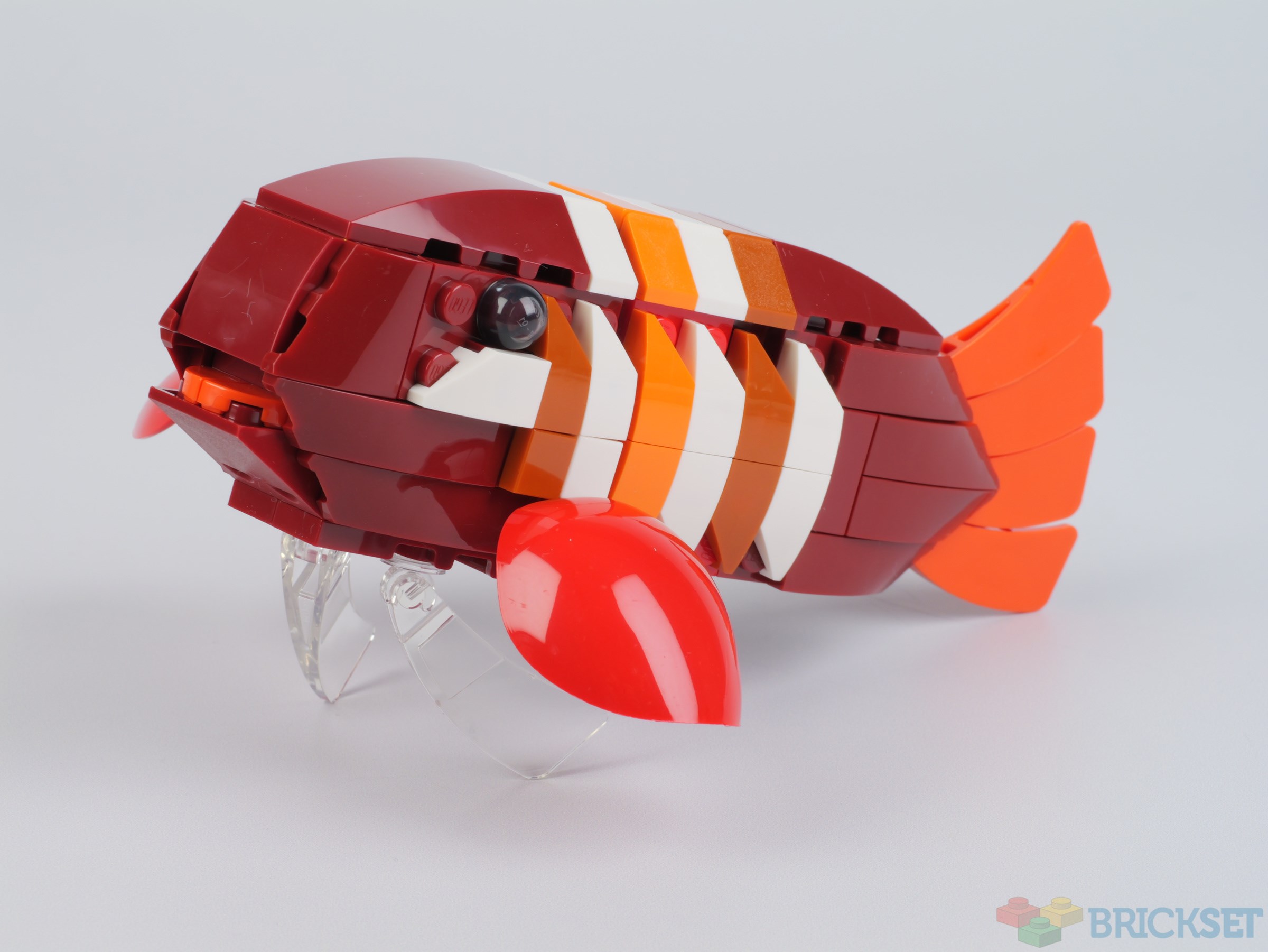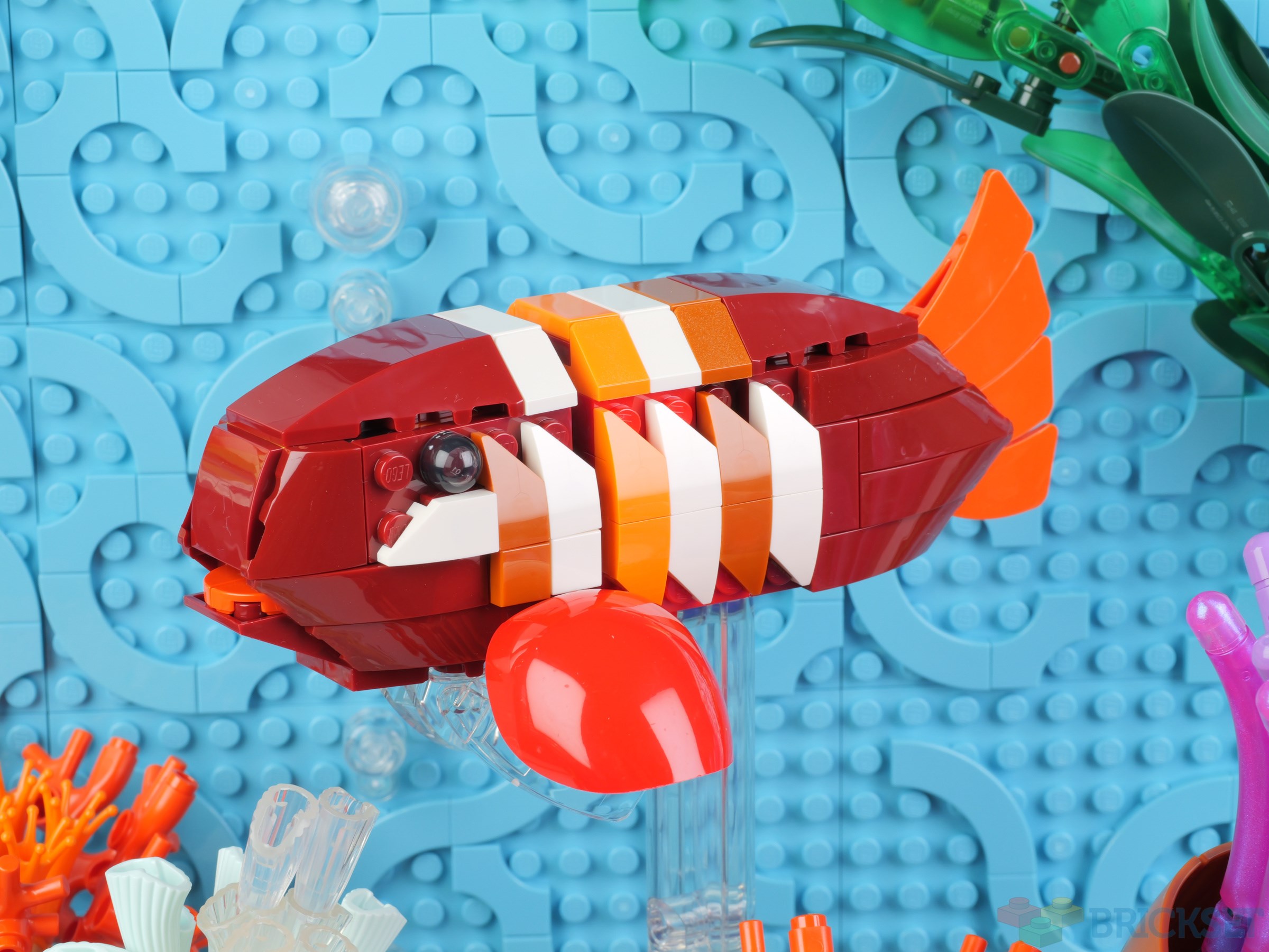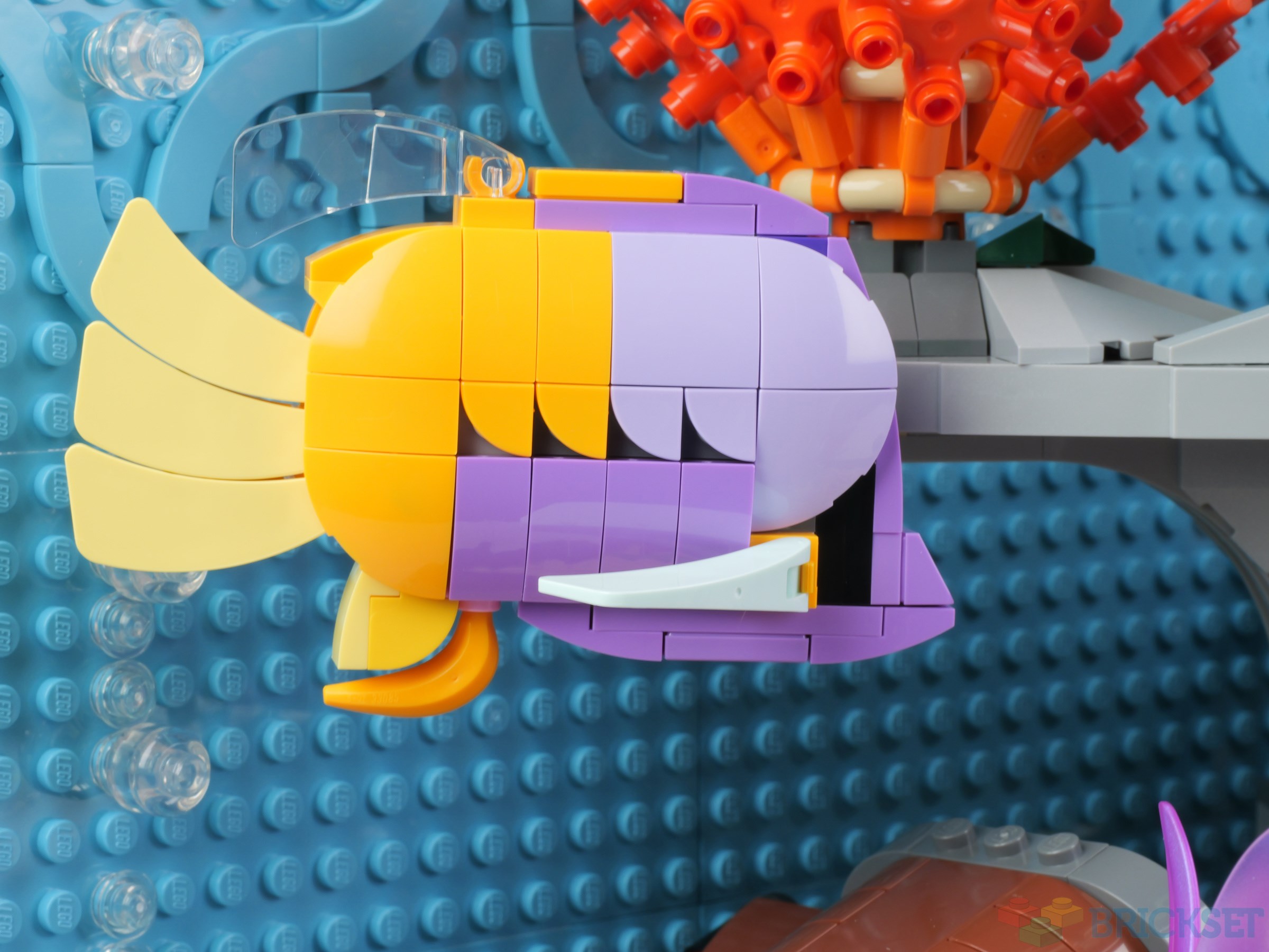 I don't know if it's just the photos not doing it justice, but every time I look at this set I can't help but be surprised that the fish aren't more colorful. Or perhaps I should say, more vibrant. Particularly the top two. I think the dark red used is a bit of a mistake. They look fine in isolation, but as part of the diorama the fish just don't "pop" the way I would expect them too.
