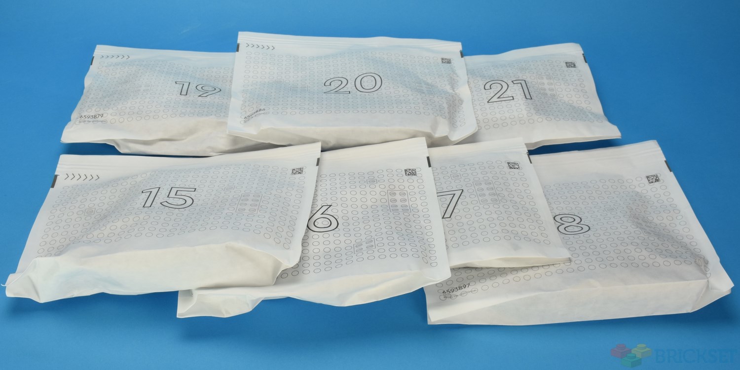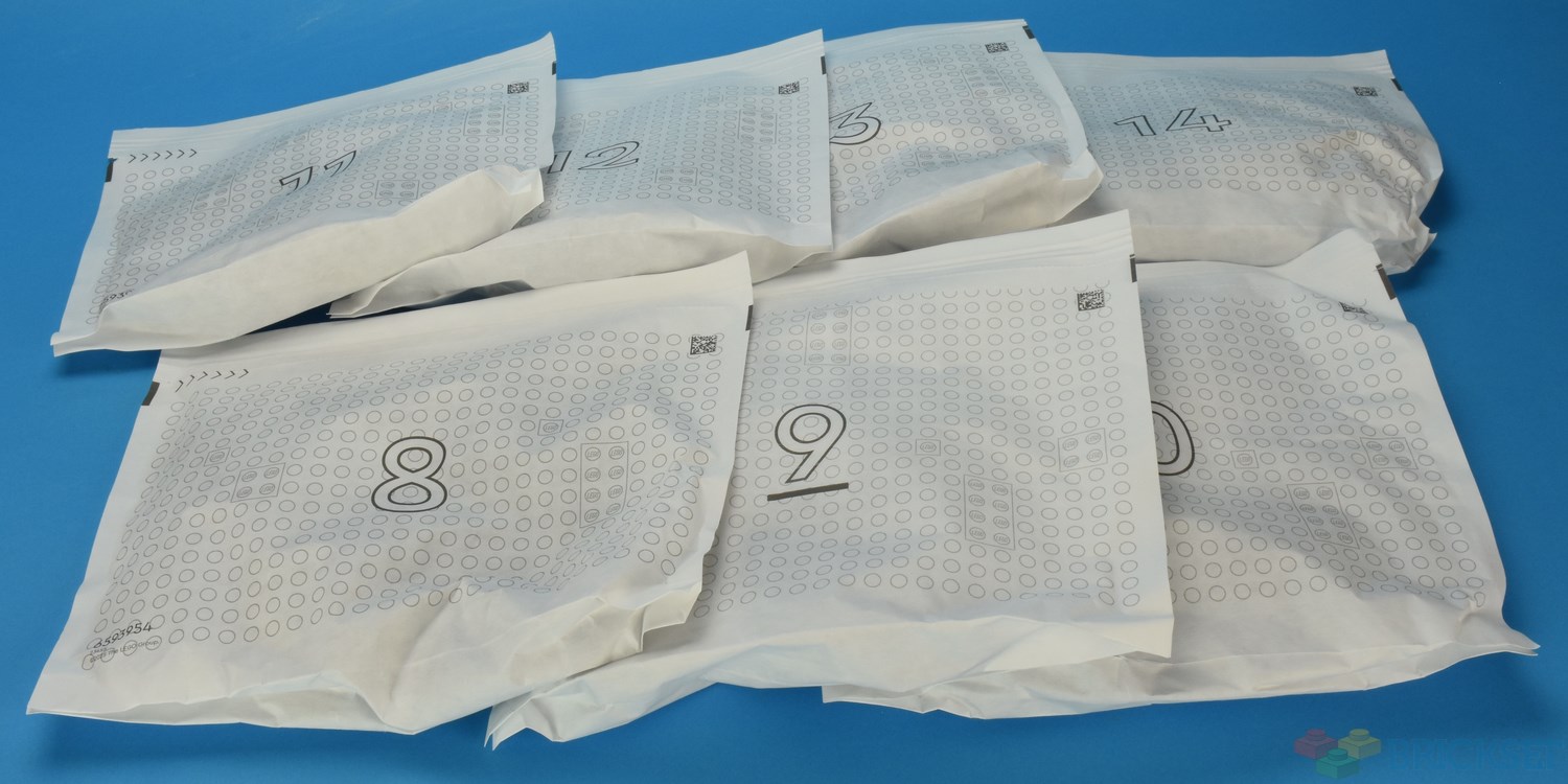 This set has 2912 pieces spread across twenty-one numbered paper bags.