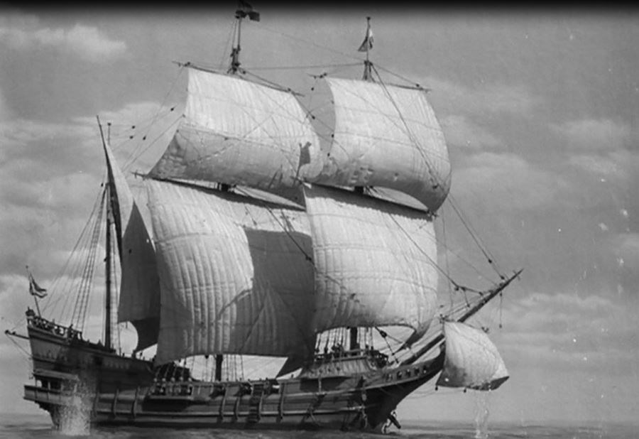 The short clip below shows Douglas Fairbanks in The Black Pirate (1926) sliding down a ship's main sail using a rapier. I have been unable to source the proper clip, but I believe it was part of The Sea Hawk movie.