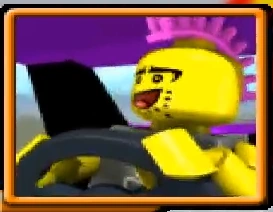 The very same element was reused for the rival racer character Sid Vacant (likely a play on Sid Vicious) in Lego Stunt Rally in 2000.