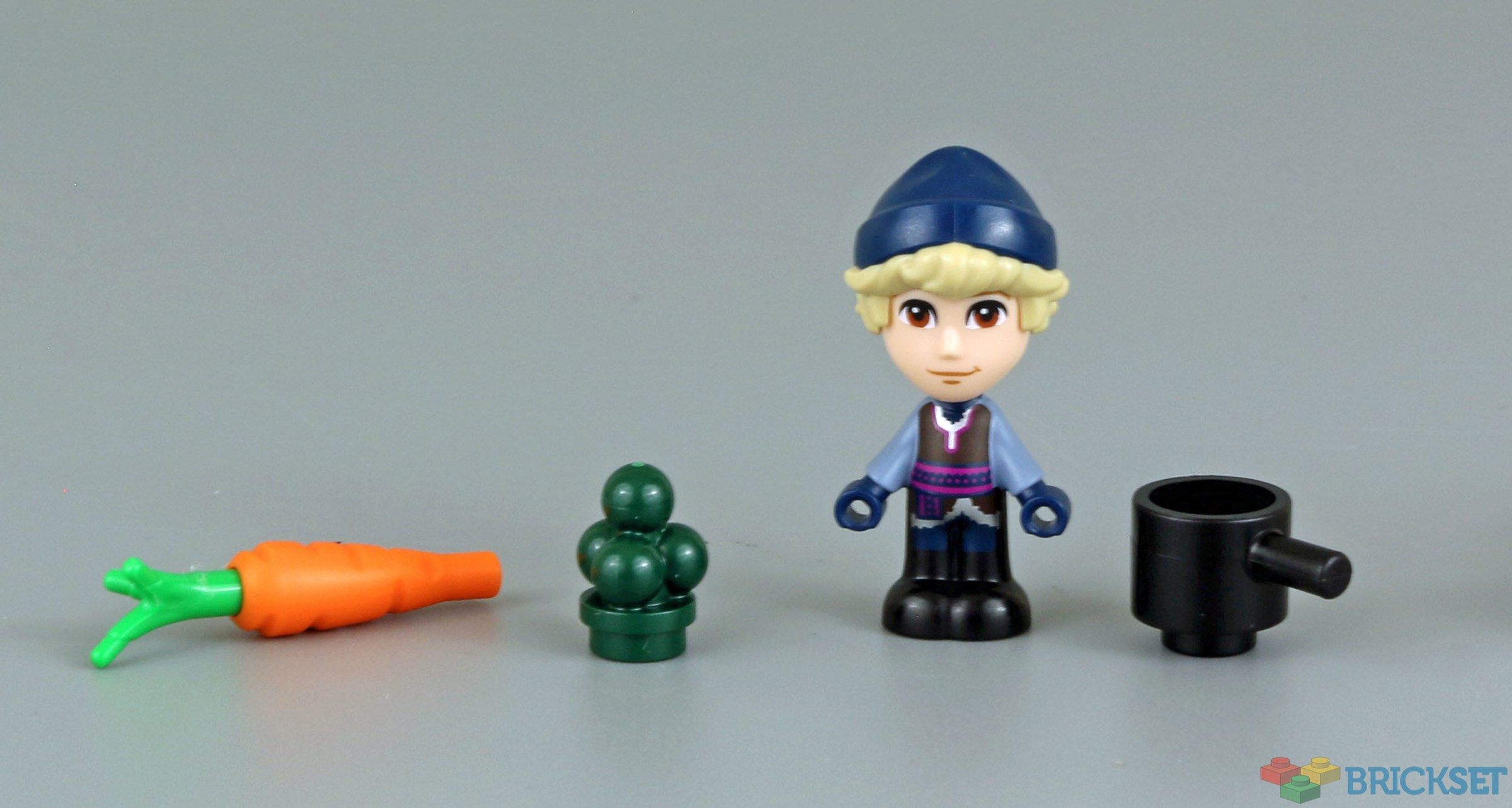 Kristoff similarly is not empty-handed. He comes with a pot and the ingredients for Flemmy stew, which is his family's speciality. A carrot is included, as it's what Sven uses to tell Kristoff that Olaf is in trouble.