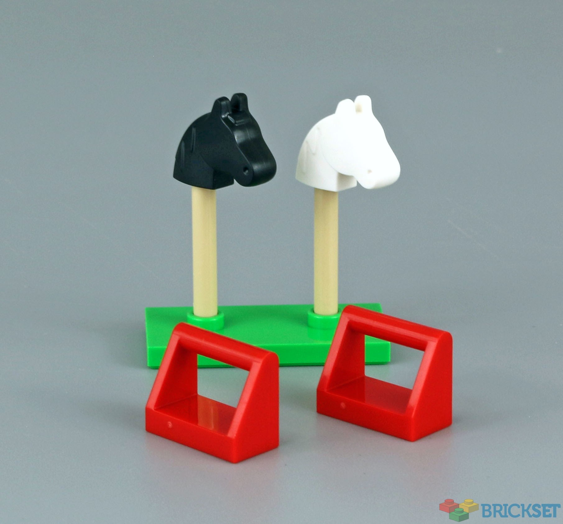 Hobbyhorses are what we have today, taking advantage of the newer horsehead pieces that were featured in some Friends sets earlier this year. Two hurdles are also provided, so it looks like the Friends will be having some fun (literally) running around the house.