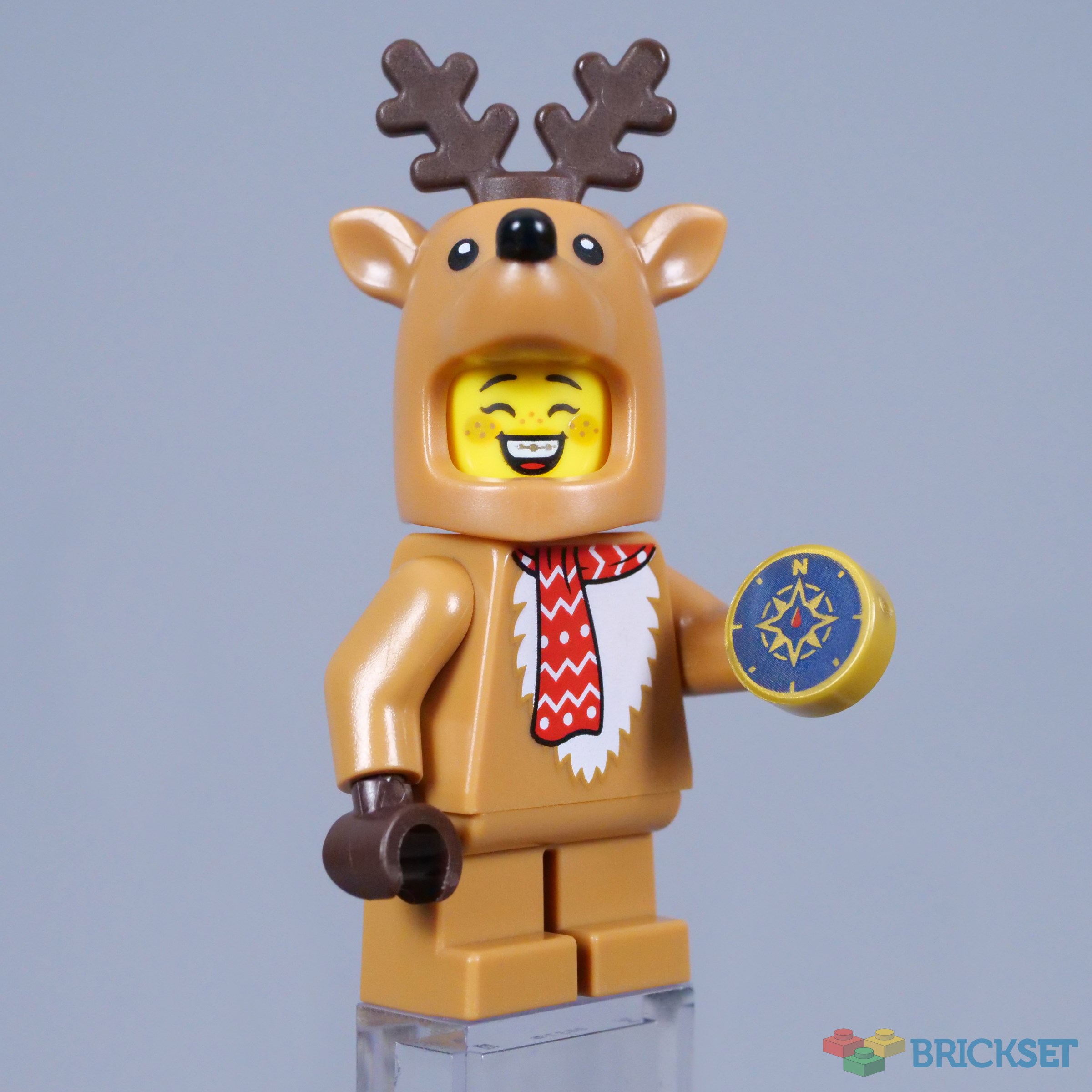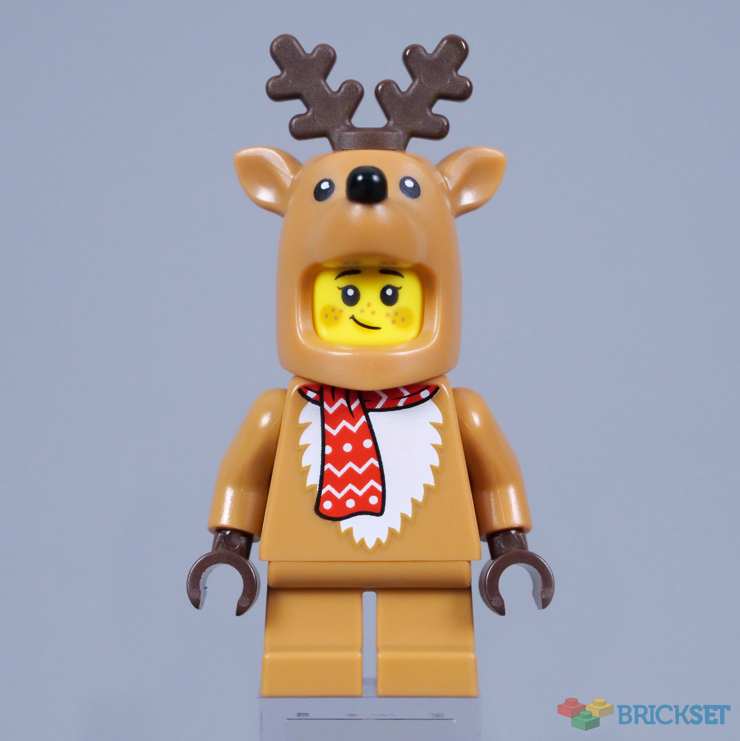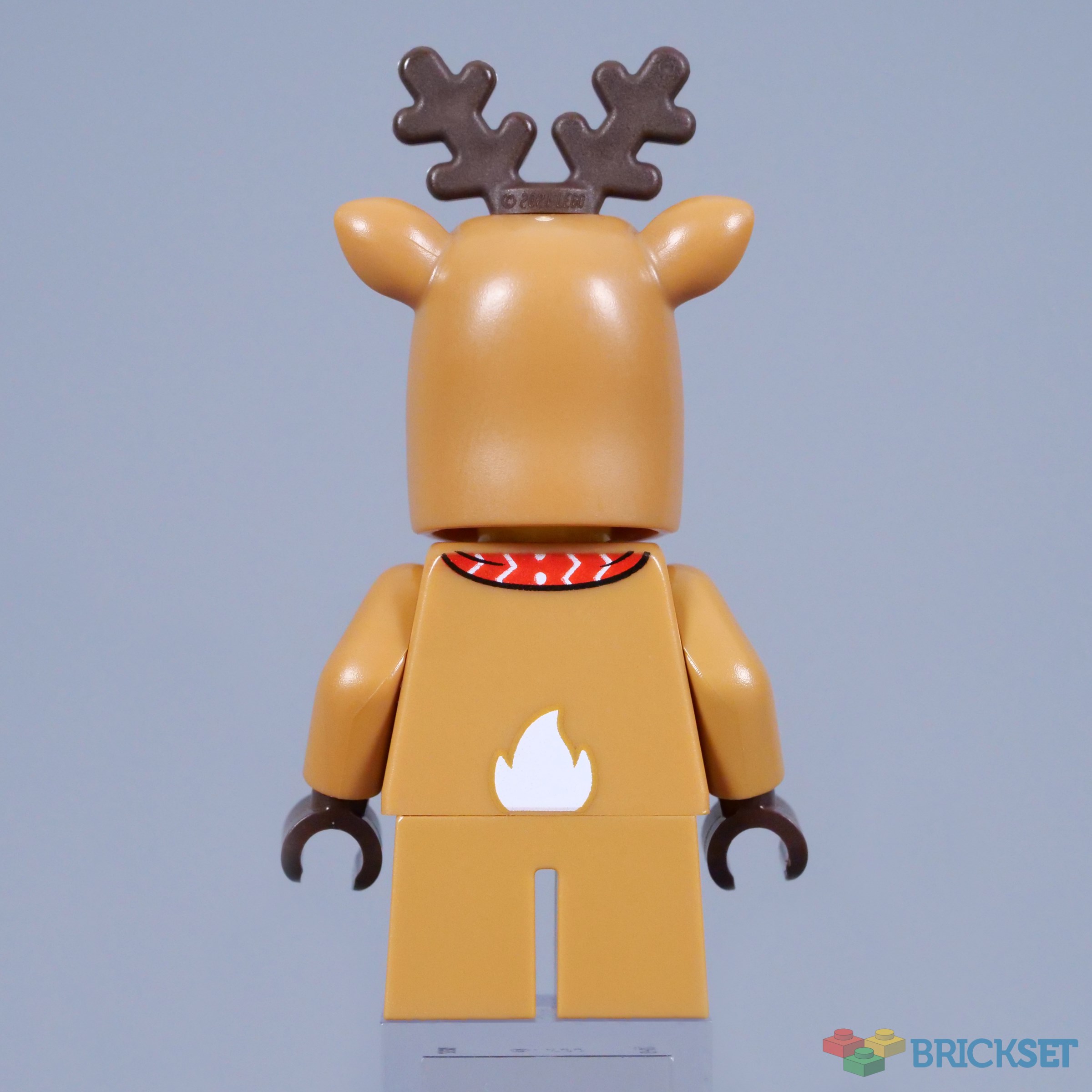 Another costumed minifigure is provided today, this time dressed as a reindeer! The headgear was created for a Reindeer Costume Collectable Minifigure a few years ago, although this one includes a black nose rather than a dark brown one. The antlers are a separate component and they look excellent, as do the moulded ears.