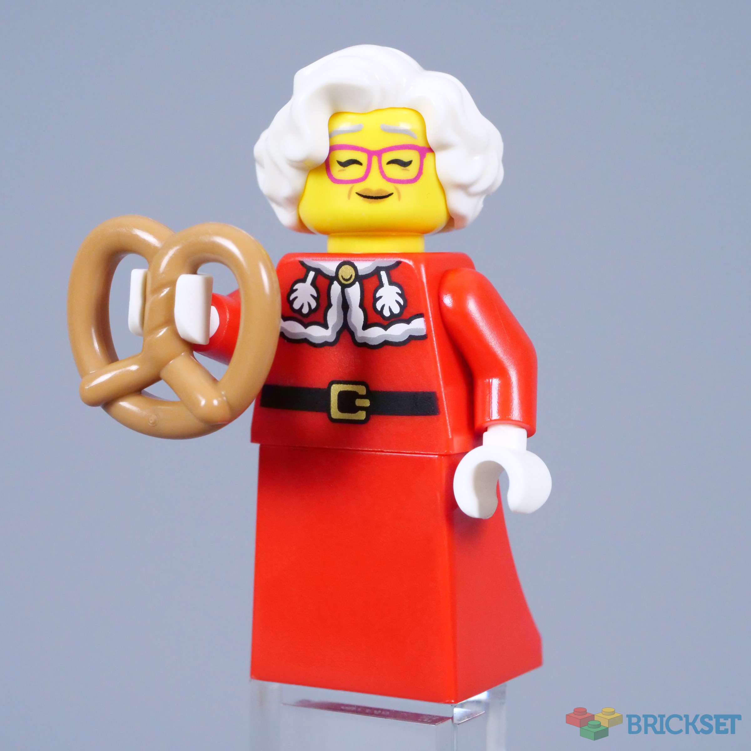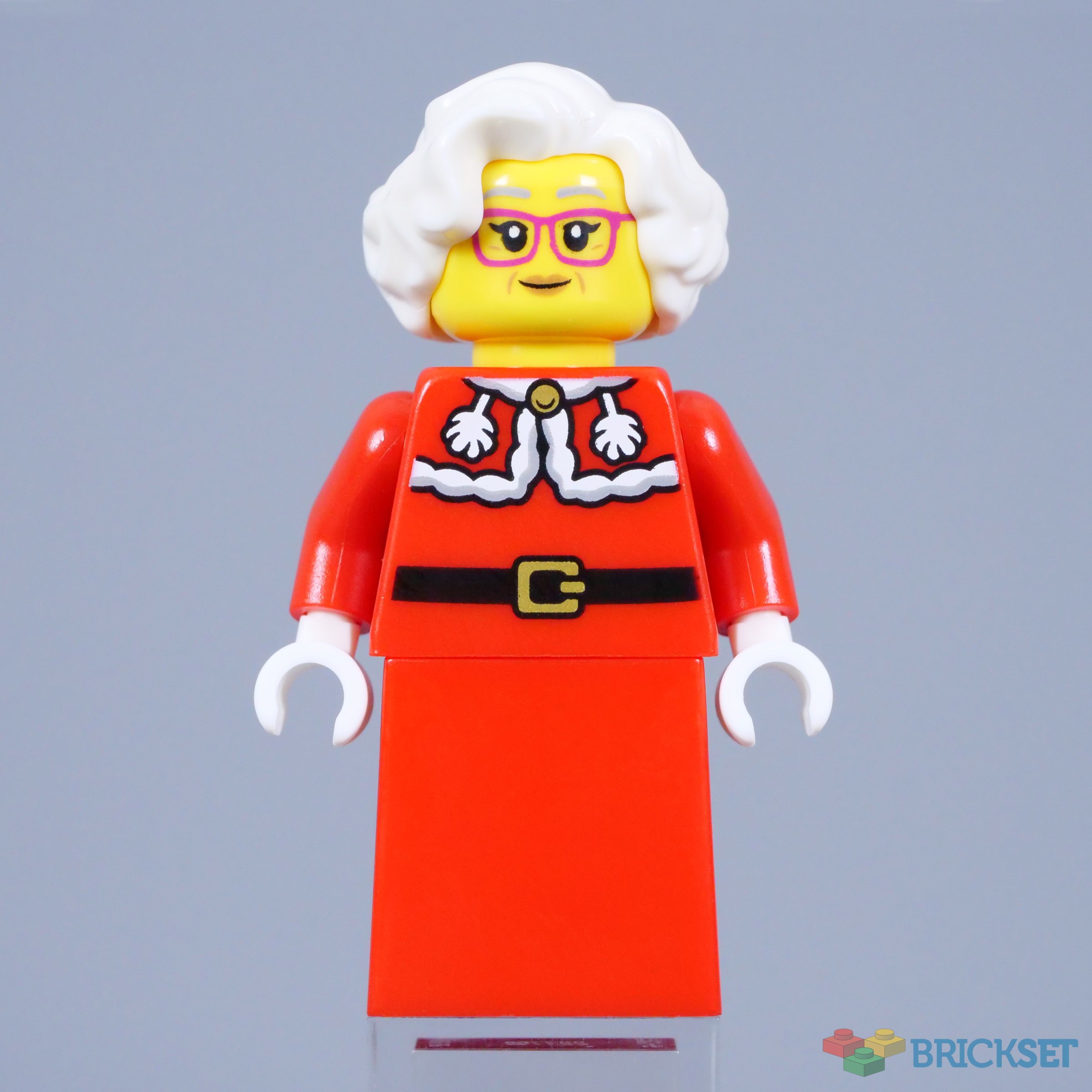 Mrs. Claus first appeared as a minifigure in 10245 Santa's Workshop, released only just over a decade ago. The character has become far more common since then, found in multiple Advent Calendars and looking pretty consistent. The white hair element and friendly double-sided head have remained identical between the last three City Advent Calendars, for instance.