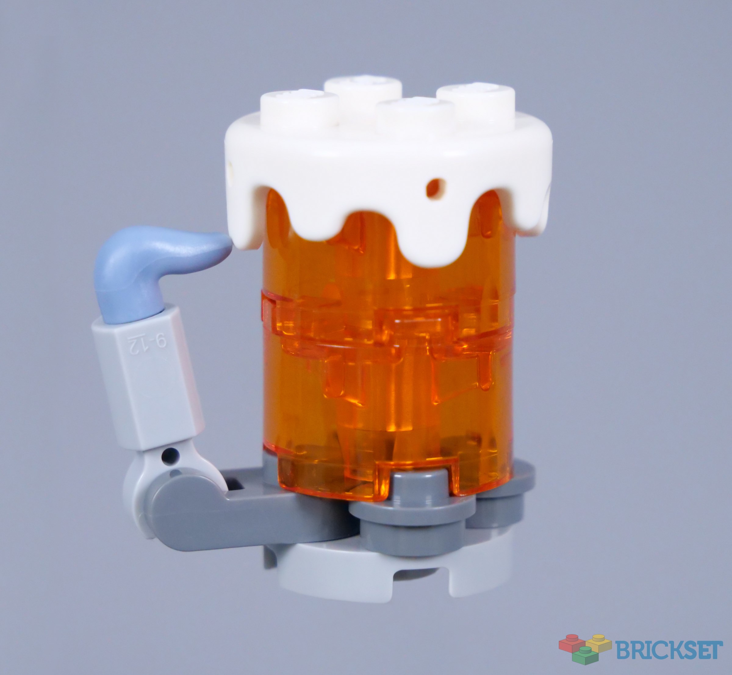 I am quite pleased with this mug of Butterbeer, making perfect use of an icing element for its frothy top. The trans-orange round bricks underneath also work well and the handle looks fairly realistic. The only minor issue is the uneven curvature around the base, where 1x1 round plates are used, but there was not really any alternative that I can see.