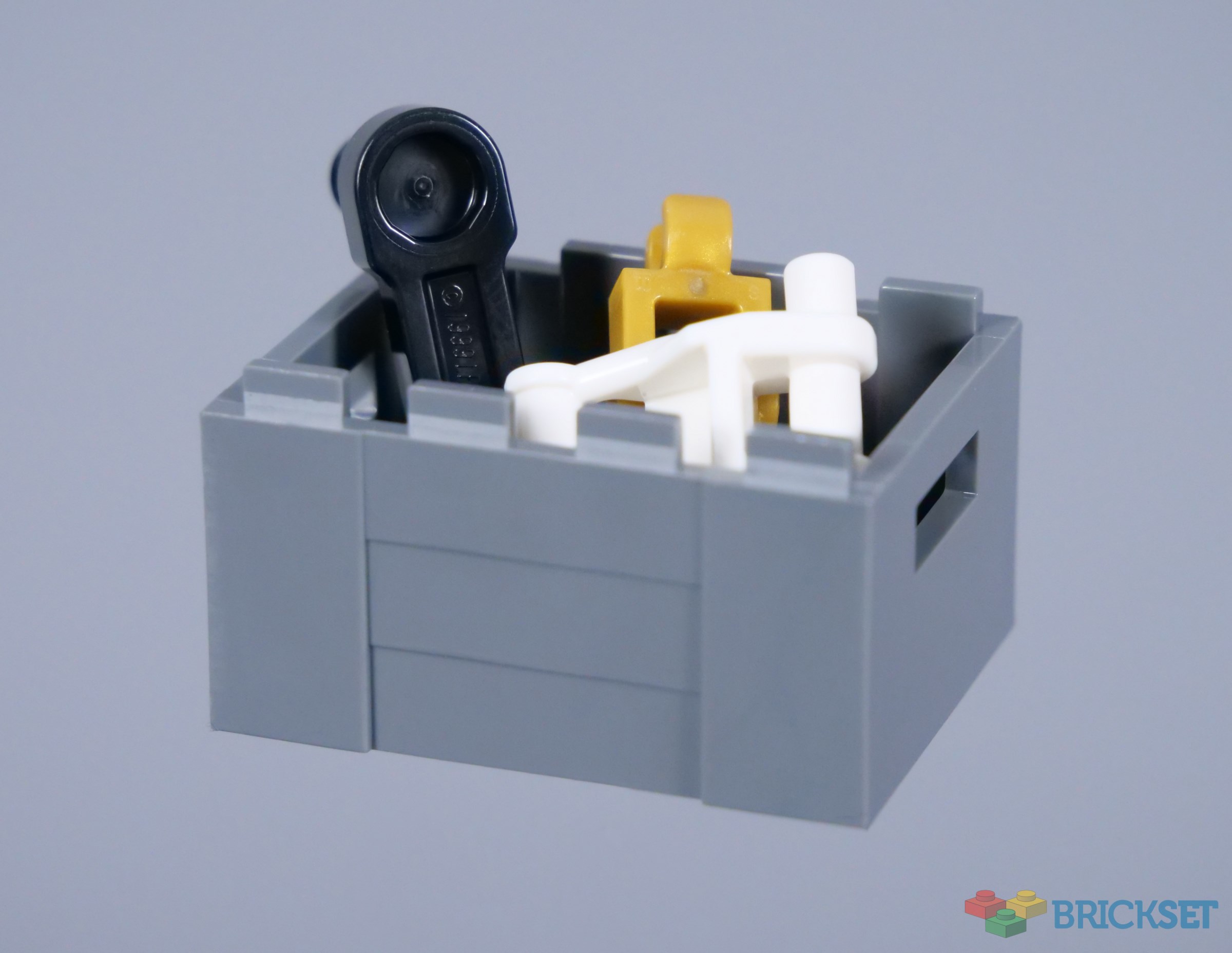 Didn't even need to assemble this one, the parts all tumbled into the crate as I opened the bag. Dark grey crate element is nice, I suppose, we usually just see them in brown.
