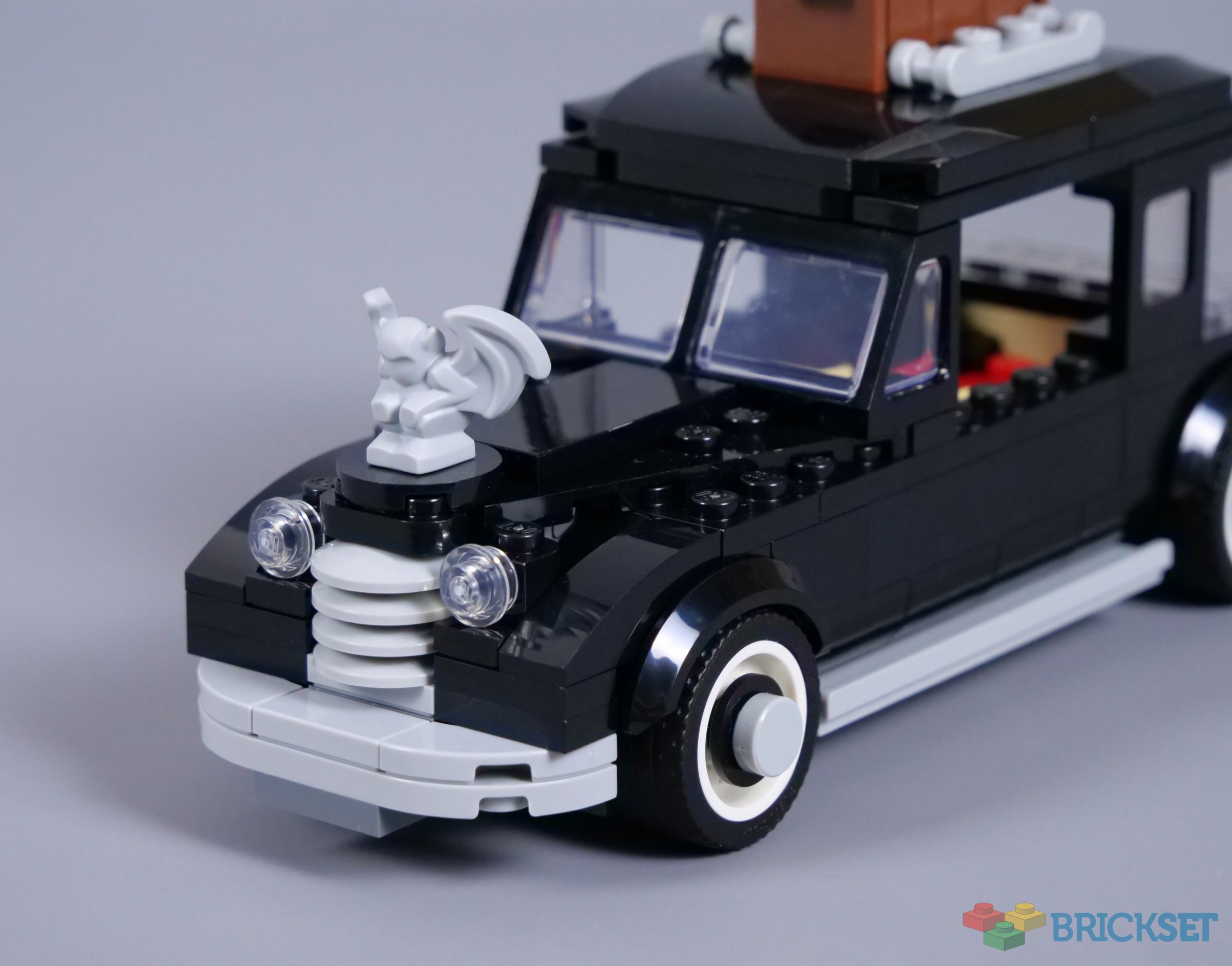 2x2 dishes work effectively for the radiator and I like the gargoyle element forming the mascot, even though it is a bit oversized. The wheels, bumper and headlights also look superb and the 2x6x2 windscreen frame is a good choice, especially because this piece is new in black.