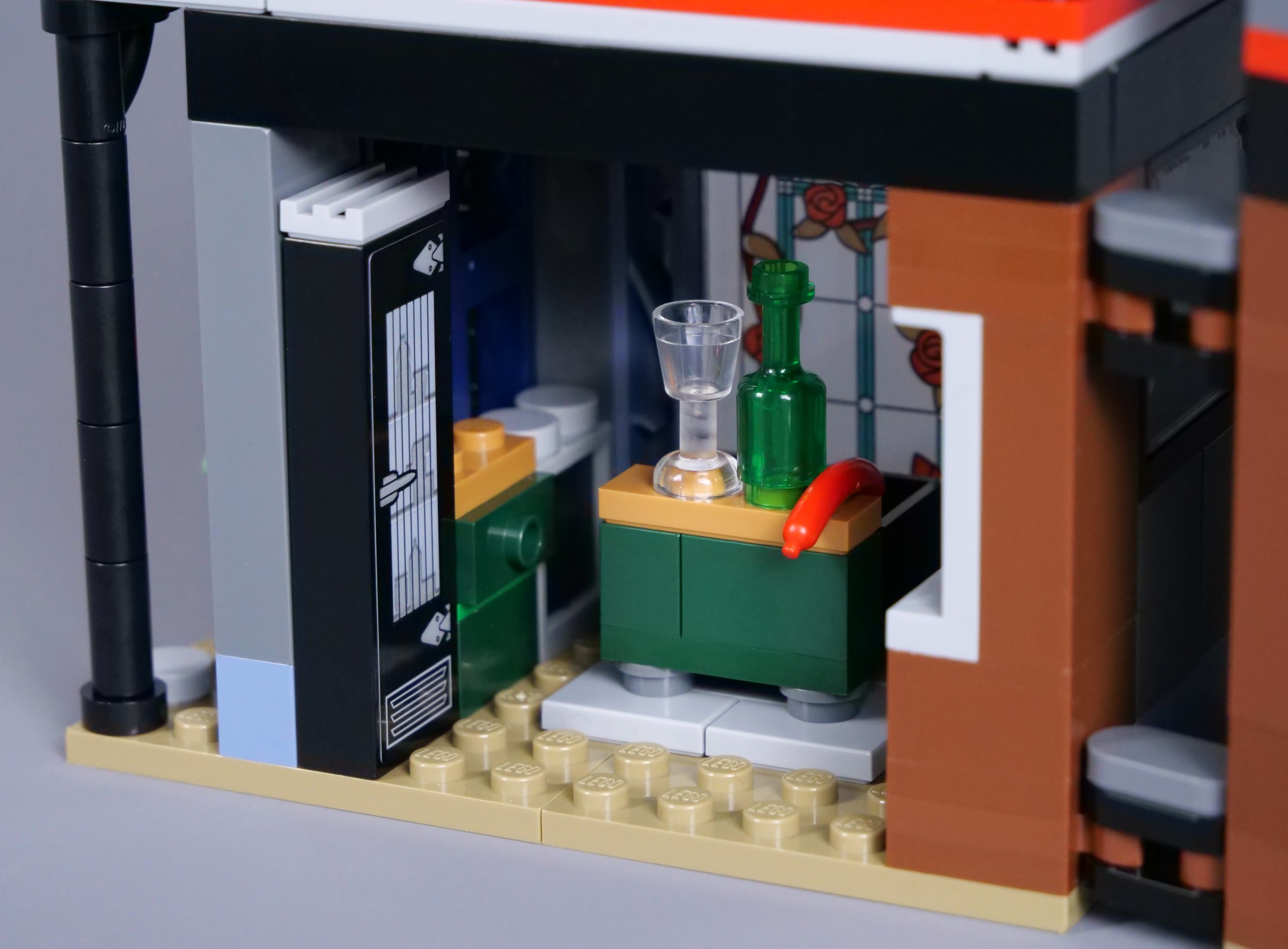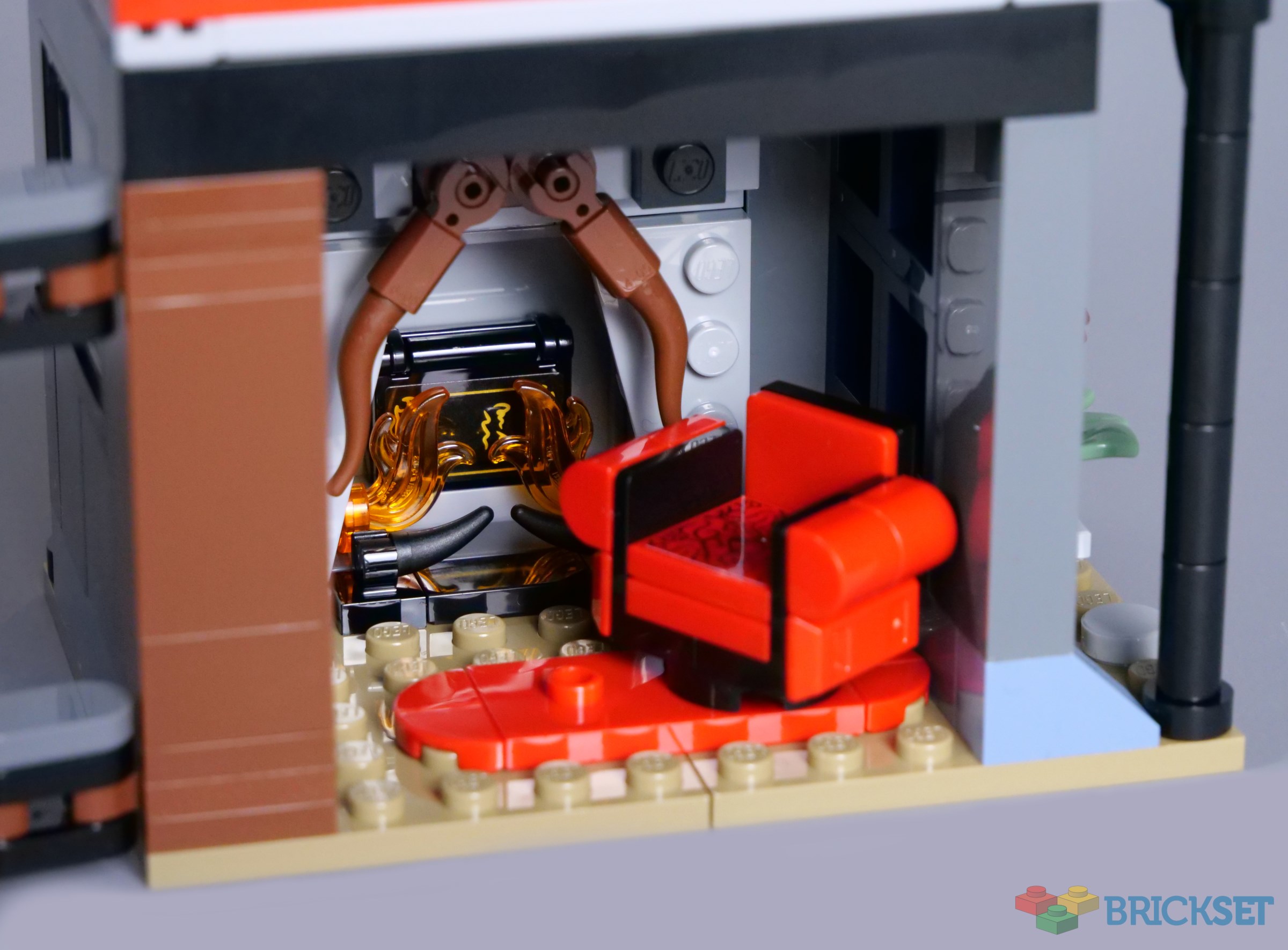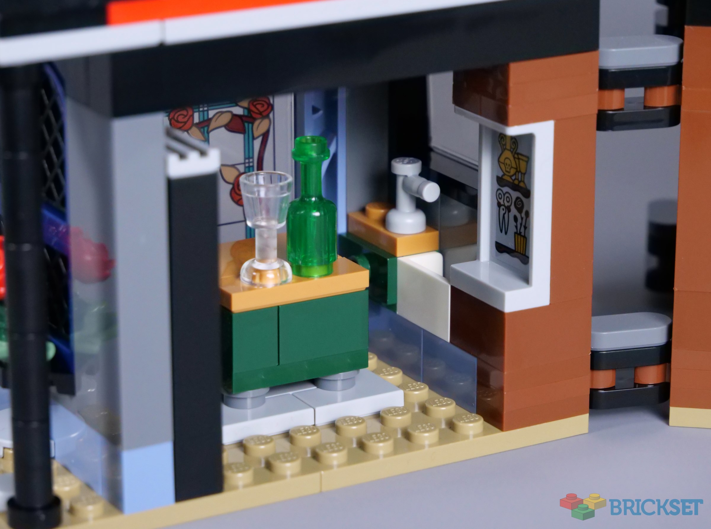 Some of us make space for a dedicated LEGO room, but Morticia's cottage contains a seance chamber! I like the red icing element forming a tablecloth, with a crystal ball on top. The sticker featuring Morticia, Gomez and Thing looks great too, although even this image shows how hard Gomez's translation to a mini-doll may be.