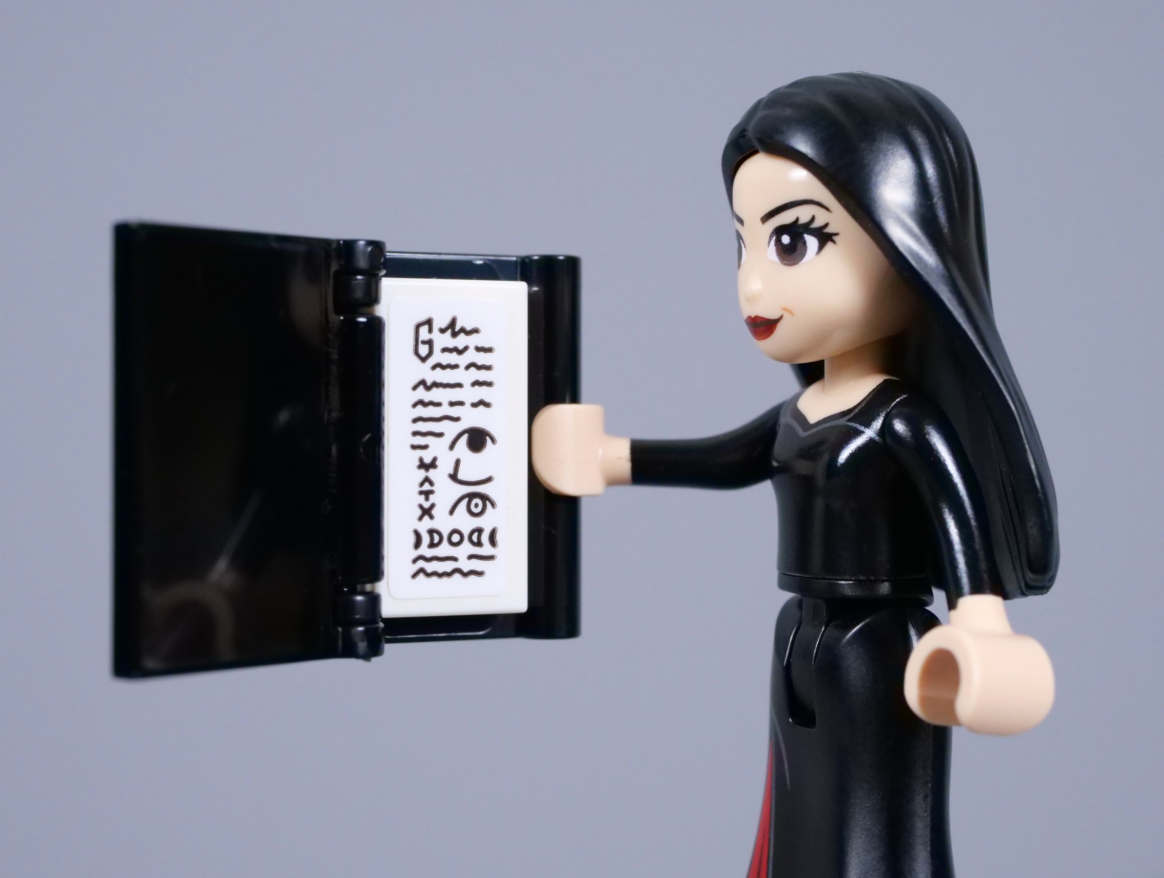 Bianca Barclay, meanwhile, is dressed in the standard purple and black uniform. Minifigures and mini-dolls rarely use short hairstyles for female characters, though this piece suits Bianca perfectly. Moreover, her piercing blue eyes are captured well and I like the metallic gold details on her torso too, including an accurate scarab pendant around her neck.