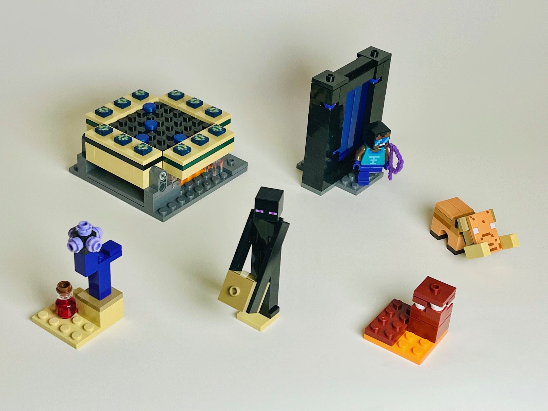 I find those tiny Nether and End token terrain builds quite silly, but in a good sense. They are enough to convey the idea, without needlessly taking up parts from the main selling points. This set really feels like a "battle pack" to enhance your existing Minecraft collection.
