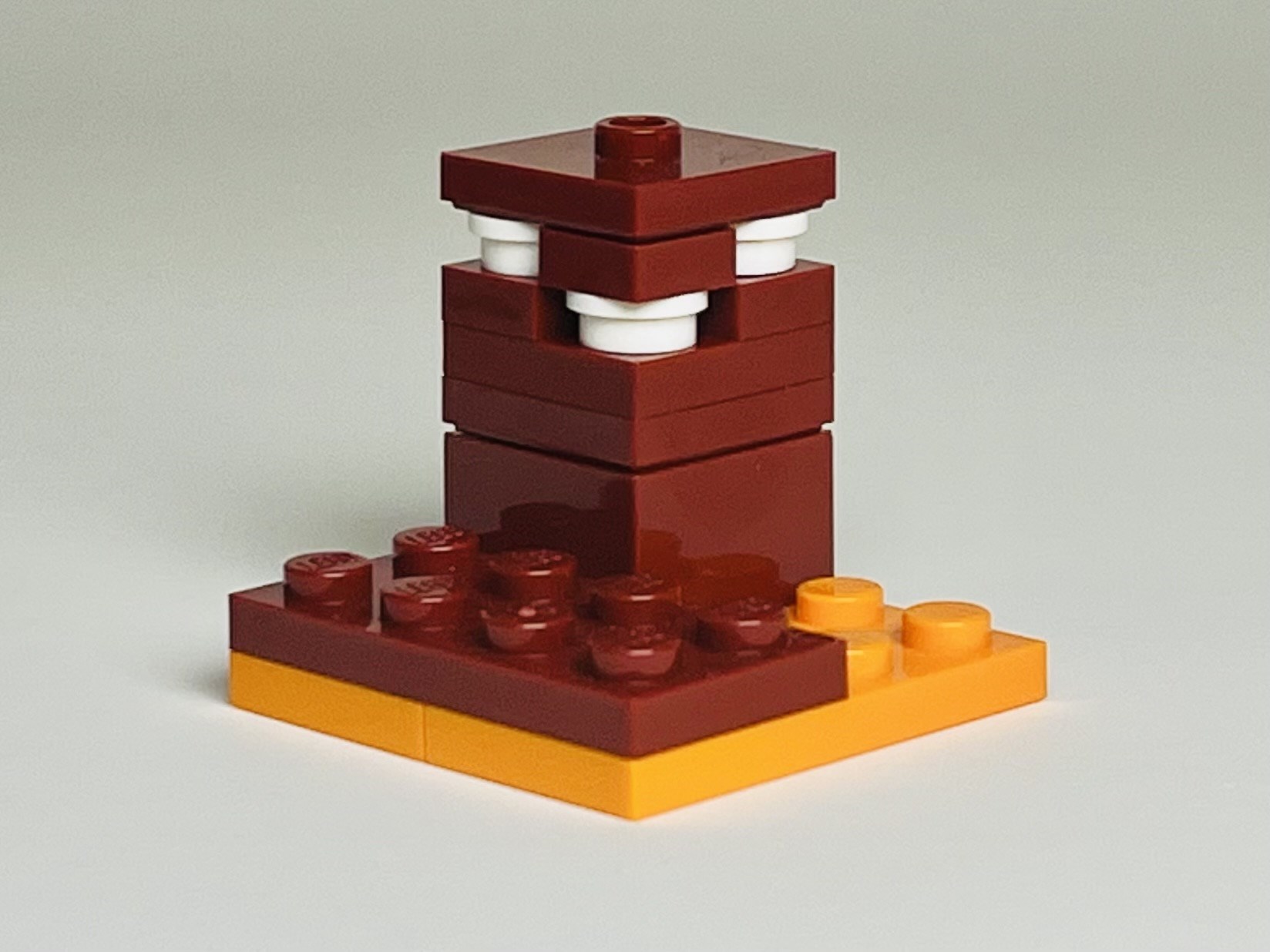 A baby hoglin was featured in 21172 The Ruined Portal back in 2021, but did not look right at all, sharing an inaccurate appearance with its adult counterpart in 21168 The Warped Forest. That version got an update more recently in 21255 The Nether Portal Ambush, and here comes its offspring with an updated design to match!