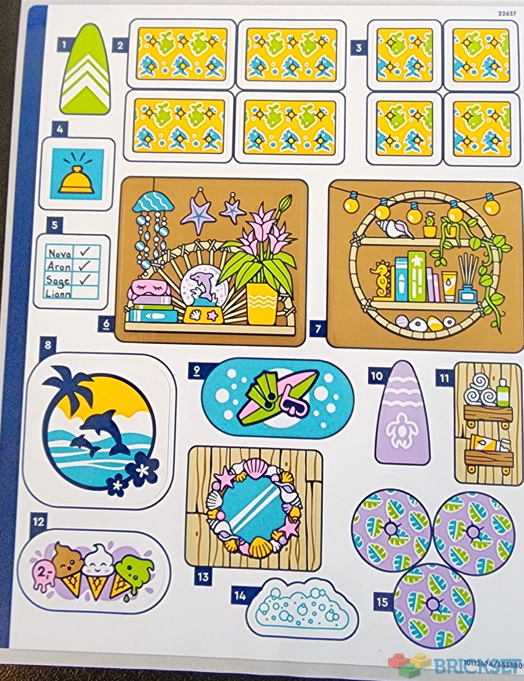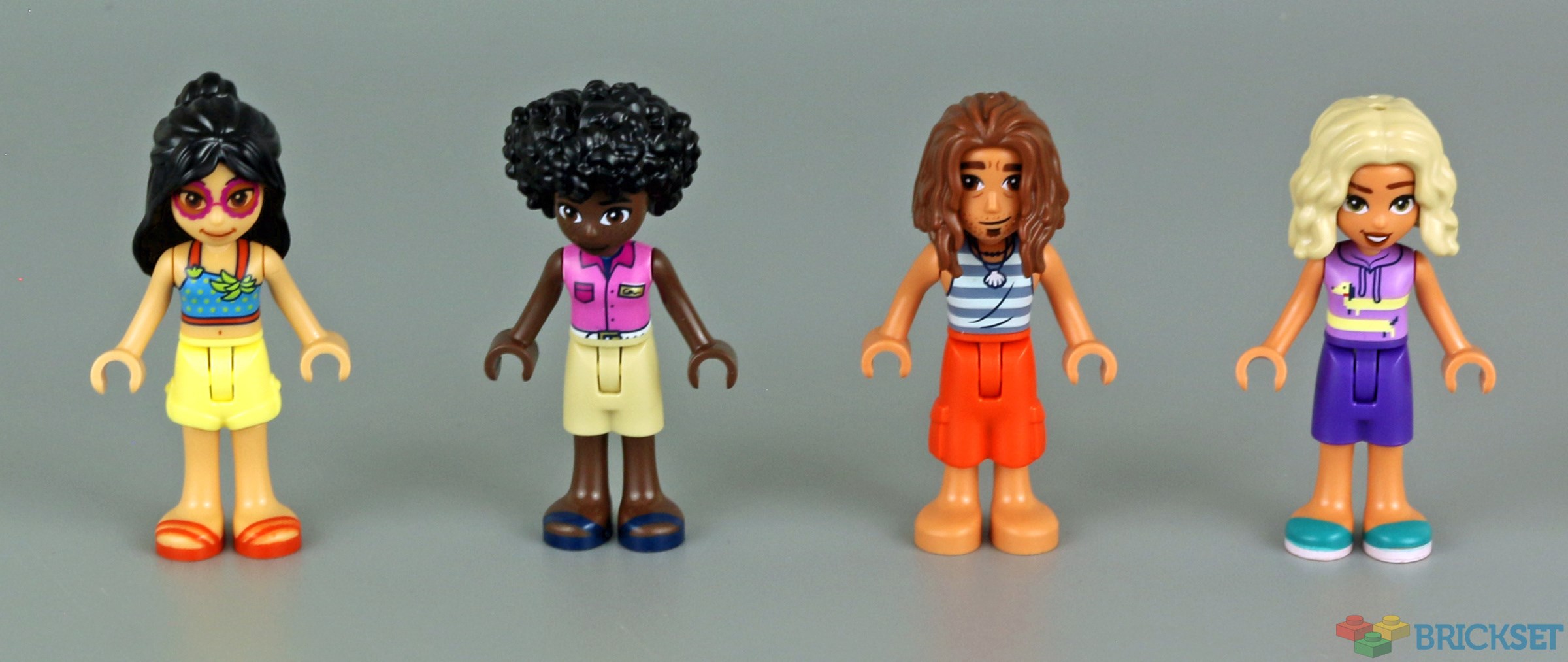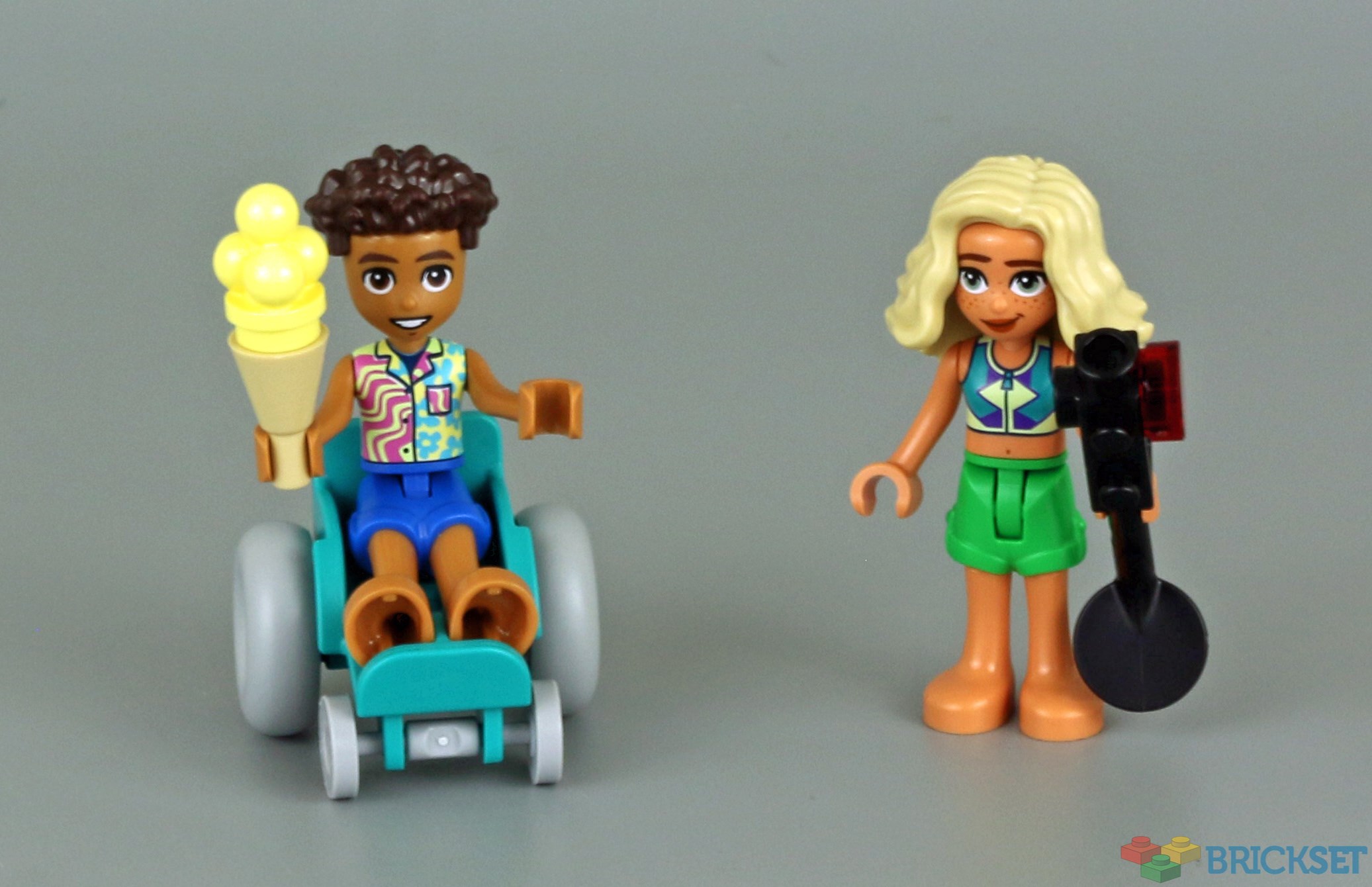 This is the first resort that I remember in the Friends world. There have been hotels, and water parks, but nothing quite like this. There's plenty to do with the floating lounger, the water slide, a waterfall, beachcombing (and metal detecting), and more. I like that there's a good population of Friends at the resort, even if there aren't enough beds for all the guests! This was a complaint quite frequently in the early years of Friends sets, as there were very few minidolls in the larger sets. I think six is a good number for a set this size. I also like the inclusion of a character in a wheelchair in a vacation location - another good check for diversity for the Friends team.