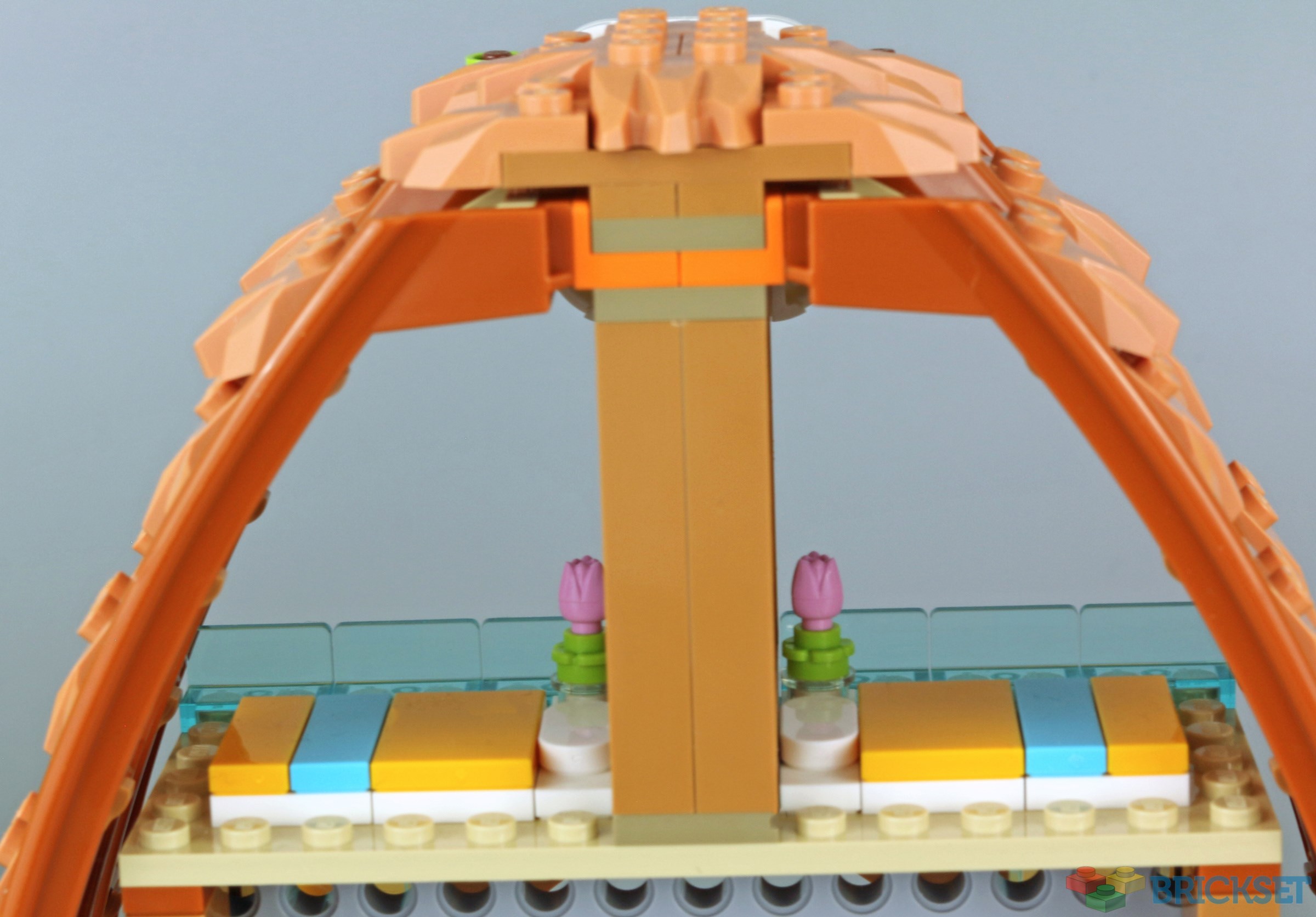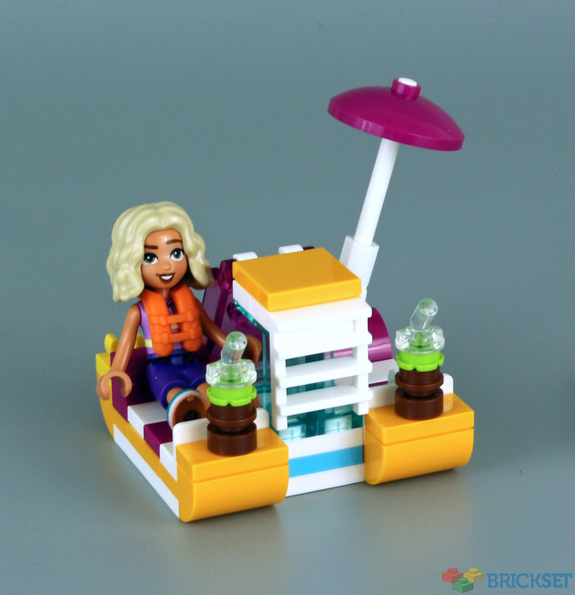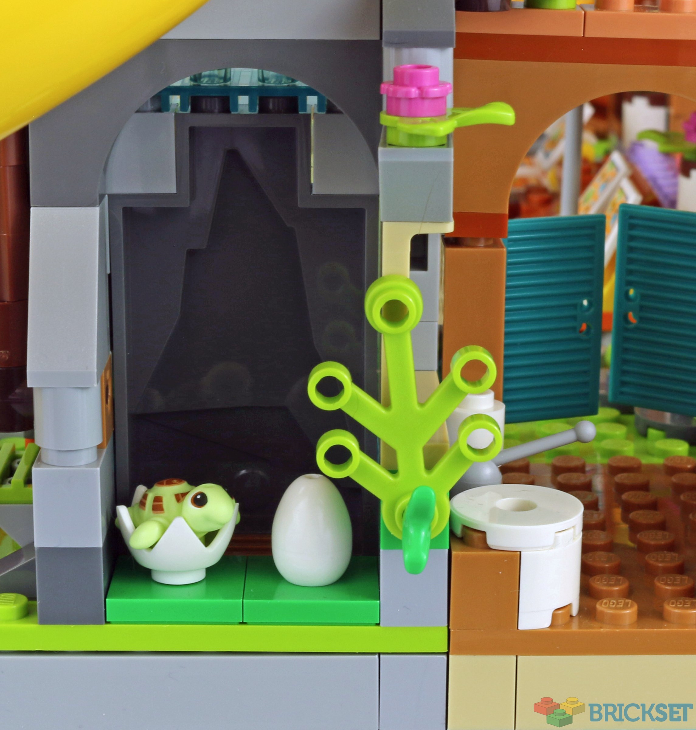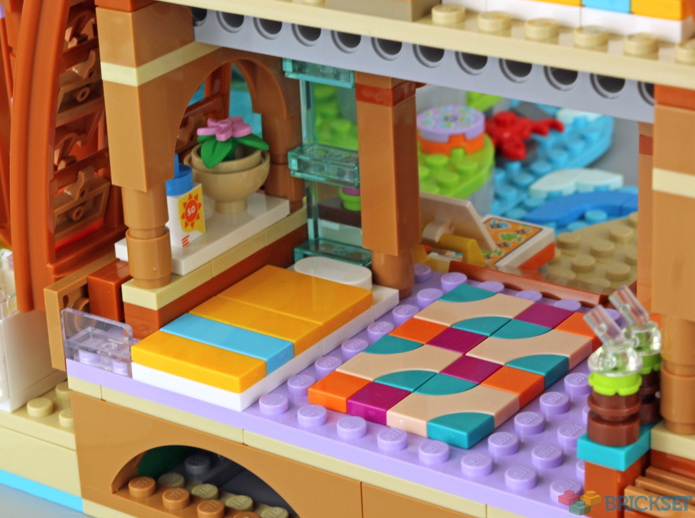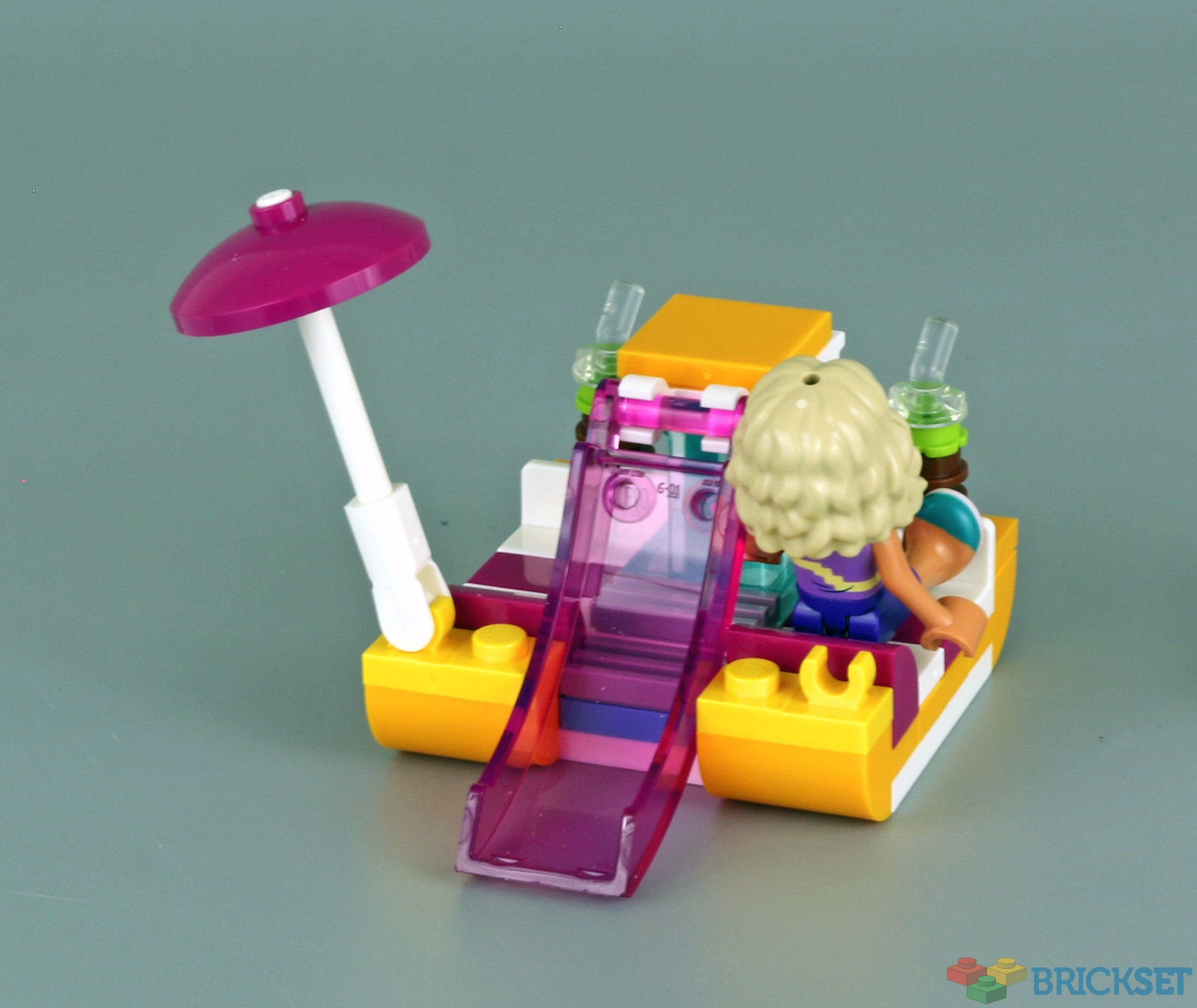 This set checks all the boxes of what you'd expect to see in a large Friends set - cute animals, a slide, some food pieces, some small moving functions, and of course, a bathroom. The use of roller coaster rail pieces for the framing of the resort is novel and quite effective with the rock pieces as thatching.