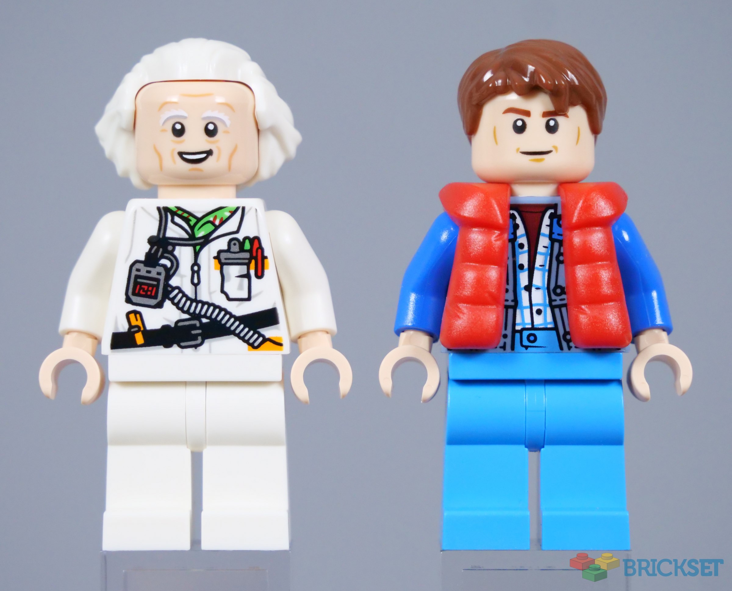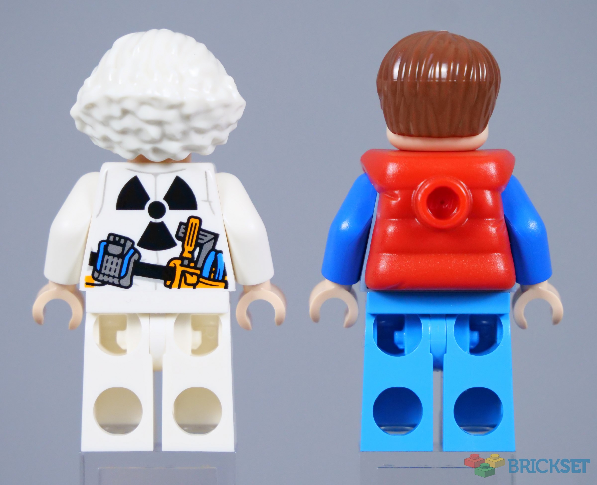 Doc Brown minifigures have appeared three times before, including two dressed in the same radiation suit. The new version is more detailed, however, fully laden with scientific equipment from the DeLorean's initial journey through time. The clock hanging around Doc's neck is a fun addition, even featuring the exact time from the movie: 1:21am!