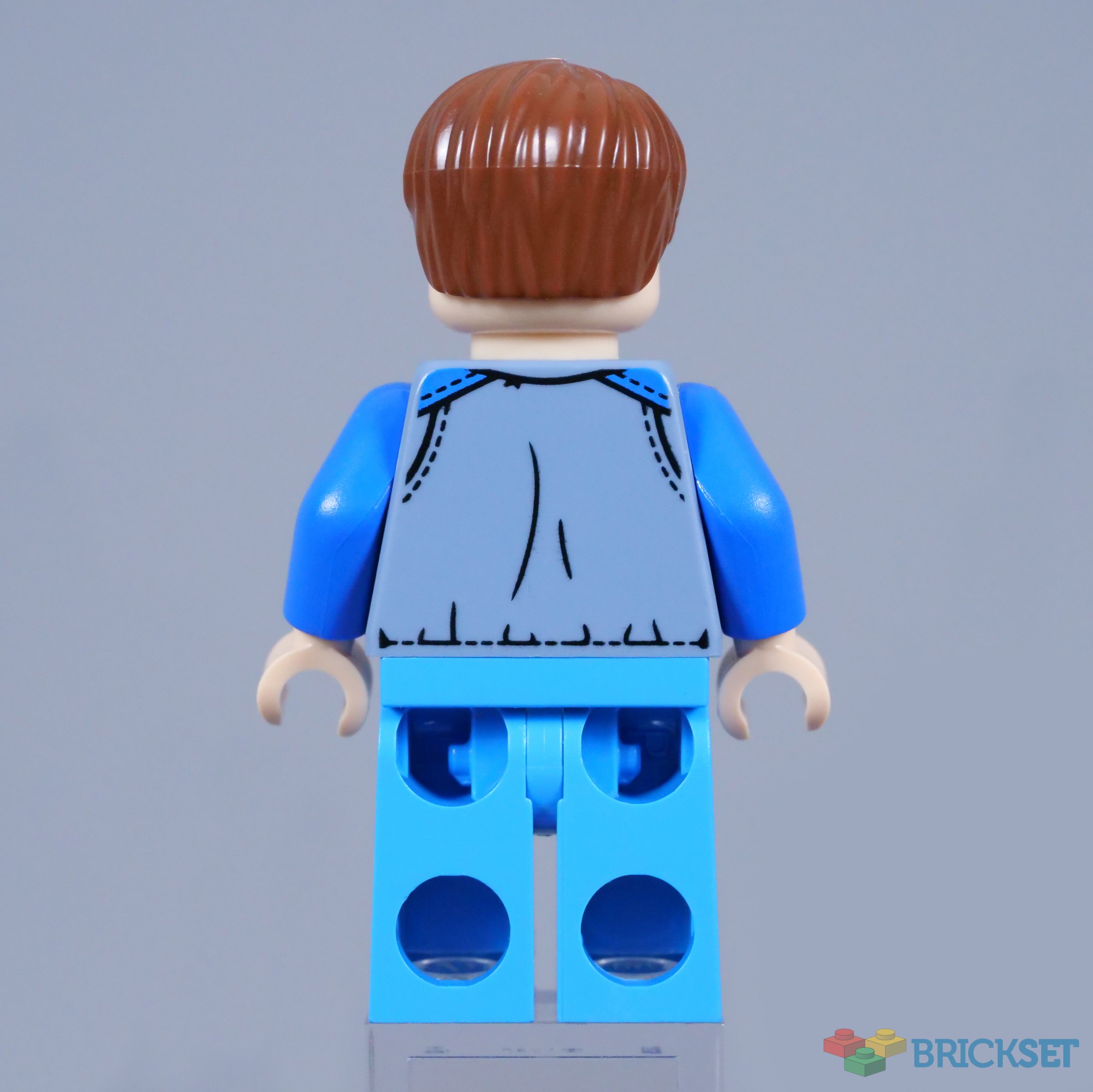 A new puffer vest element was designed for DREAMZzz in 2024, perfect for Marty McFly. This minifigure takes full advantage and Marty's jacket looks predictably splendid. Much of the detail on the torso is hidden underneath, but removing the jacket reveals accurate stitching, with a few little pins and the patterned shirt as well.
