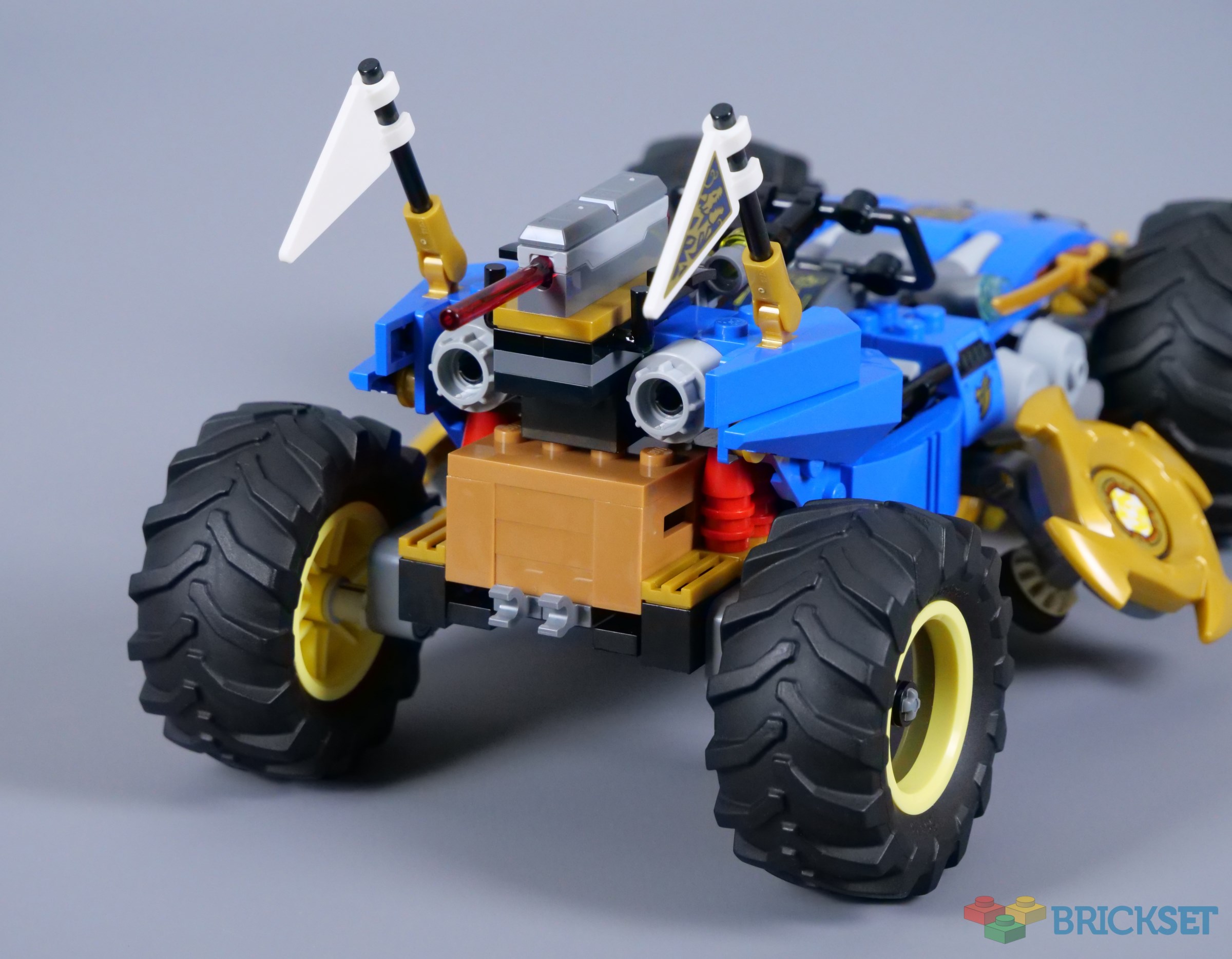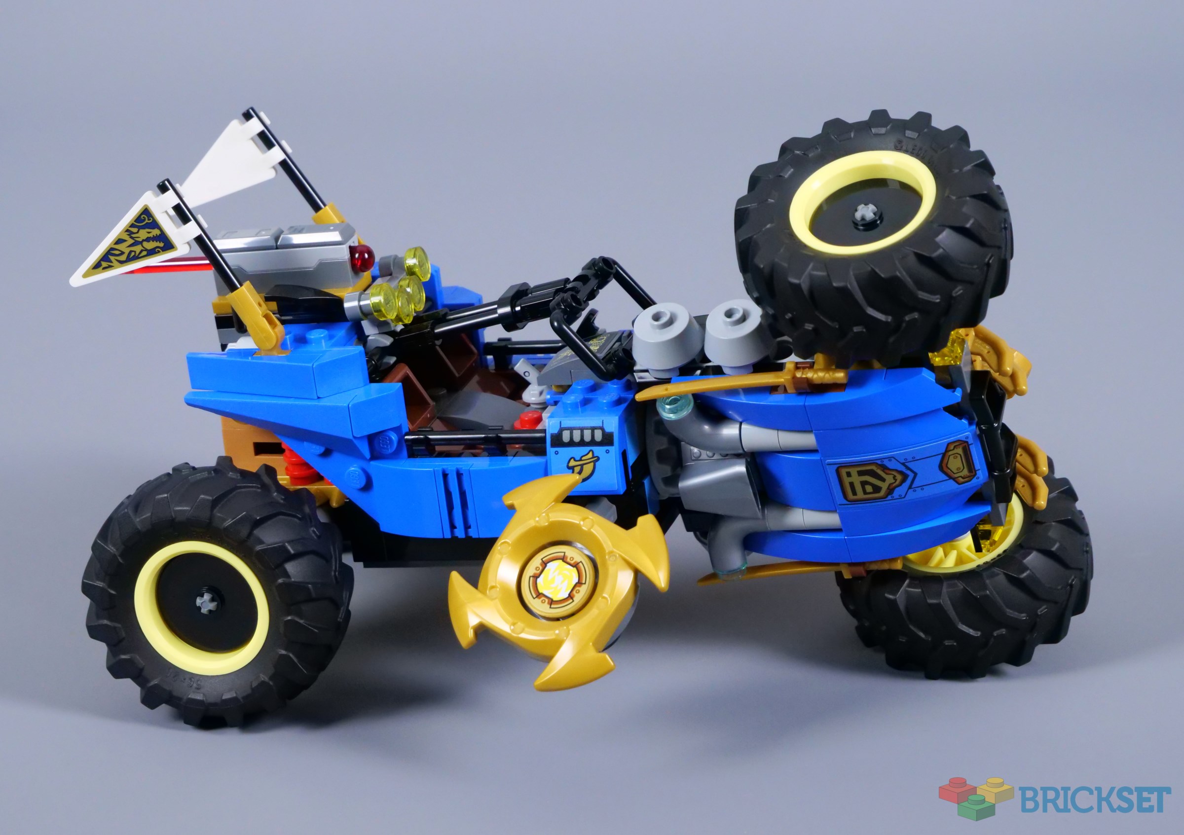 However, it is a bit smaller than I expected, only measuring 19cm in length. There is not really any need for the model to be bigger, other than concerns about its cost. 71811 Arin's Ninja Off-Road Buggy Car was 22cm long for comparison, though Jay's version contains more parts and looks chunkier.
