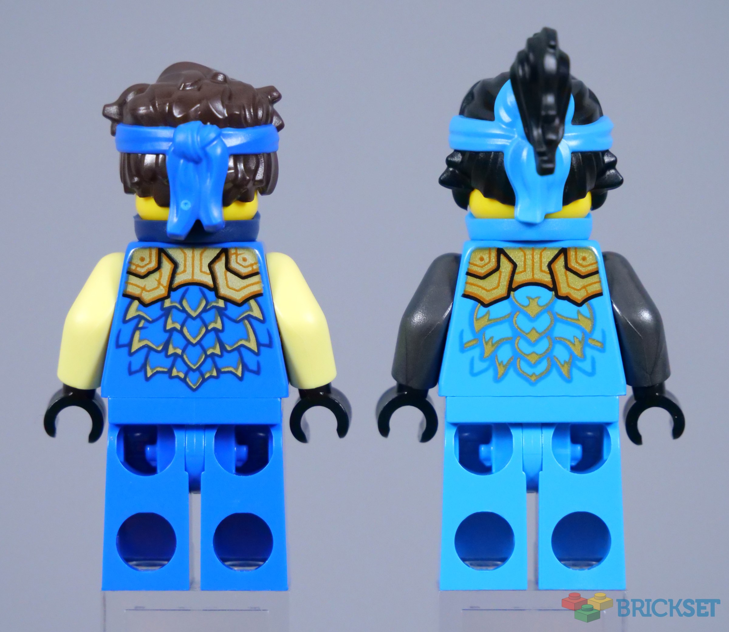 Both minifigures use their hair pieces with dual-moulded headbands and matching bandanas, although they lack the shoulder armour worn by the ninja elsewhere in this wave, for reasons unknown. While I like that pointy armour element on the whole, these figures look surprisingly good without it.
