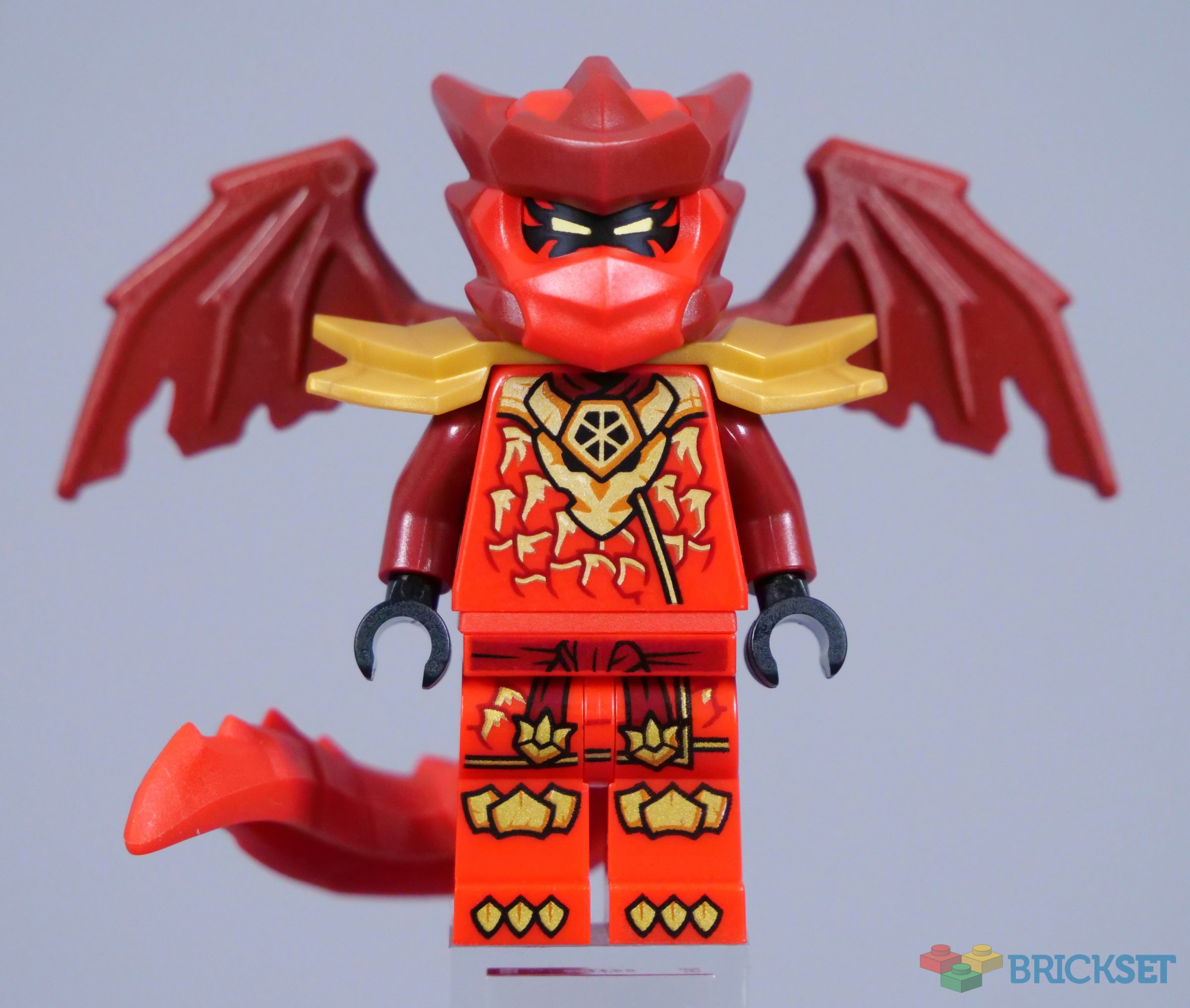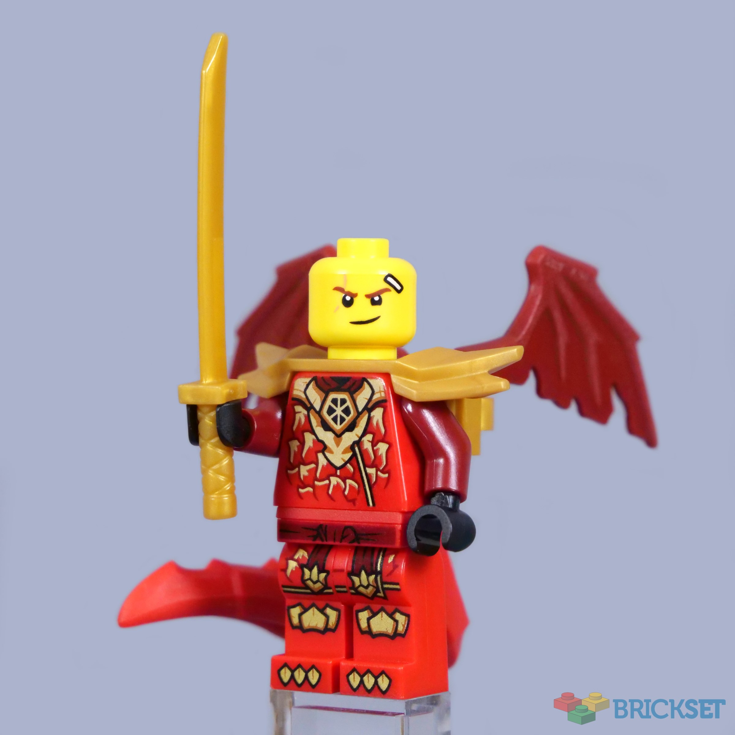 Kai's standard smiling head looks a bit silly with his wings and dragon tail attached, although the option is there! Otherwise, he too is equipped with a pearl gold sword, which seems like quite an underwhelming weapon for such an elaborate minifigure.