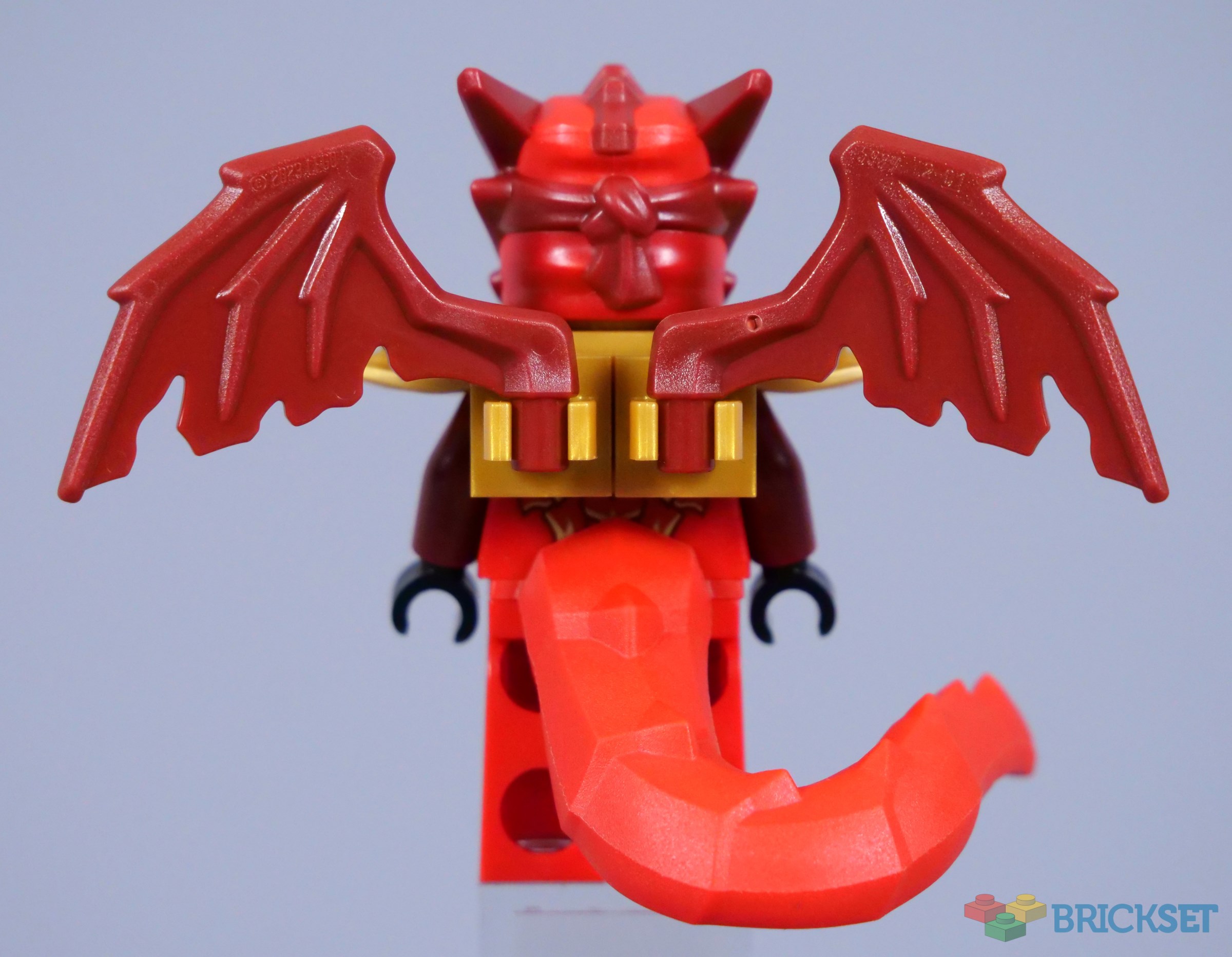 Wings are connected to clips on the back of the shoulder armour, re-used from the Dragonian minifigures introduced last year. However, the moulded tail is new and really distinguishes this version of the ninja from others, including their Golden Dragon variants from Crystalized, which also had articulated wings.