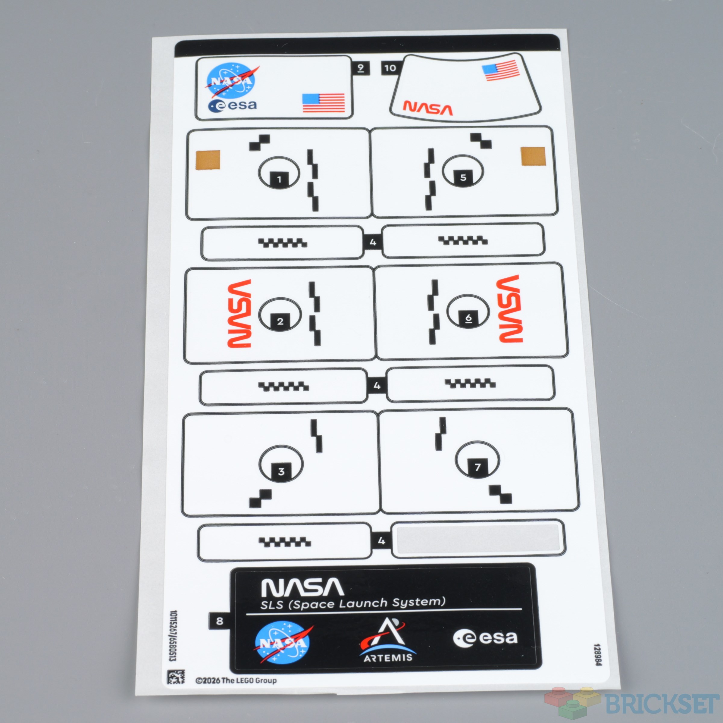 The small sticker sheet provides decals with the NASA logo, other small details on the rocket, and one for the plaque on the base.