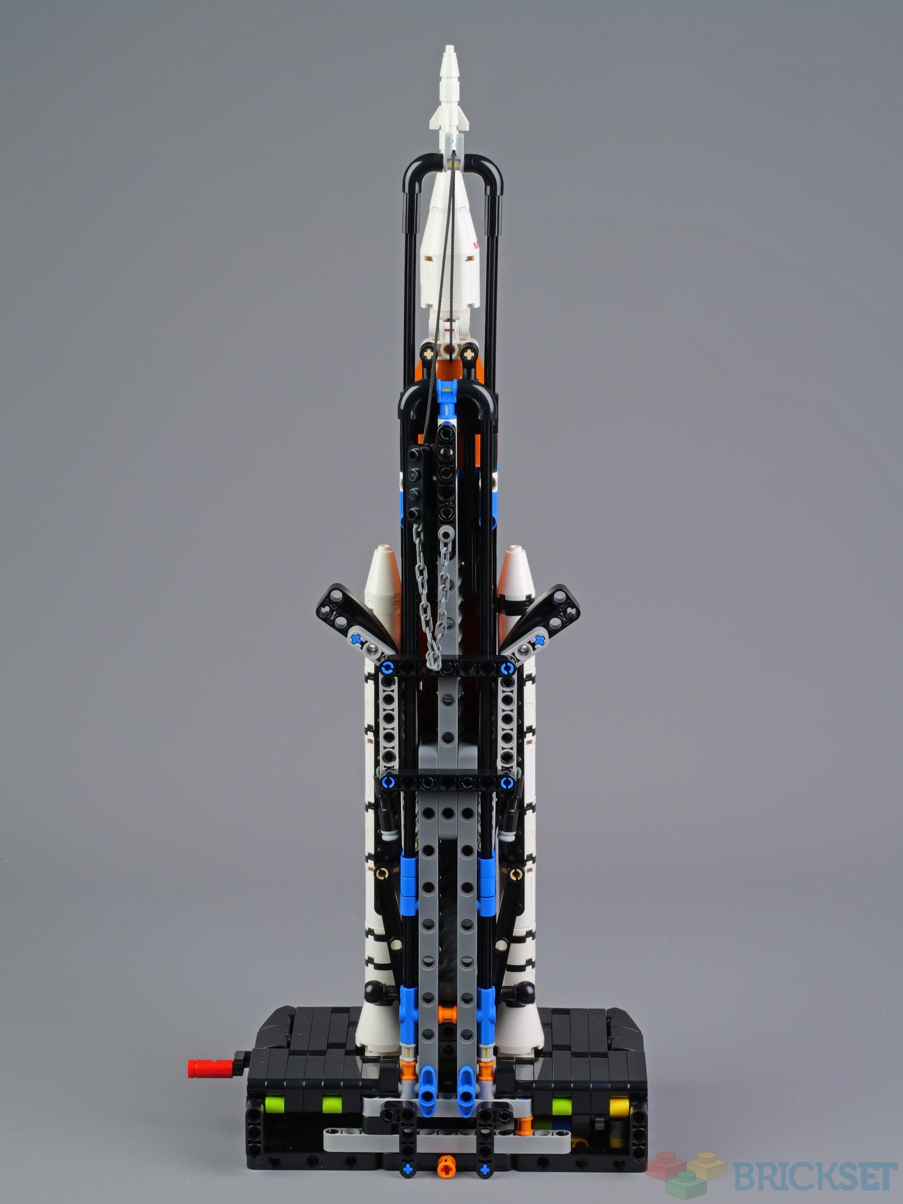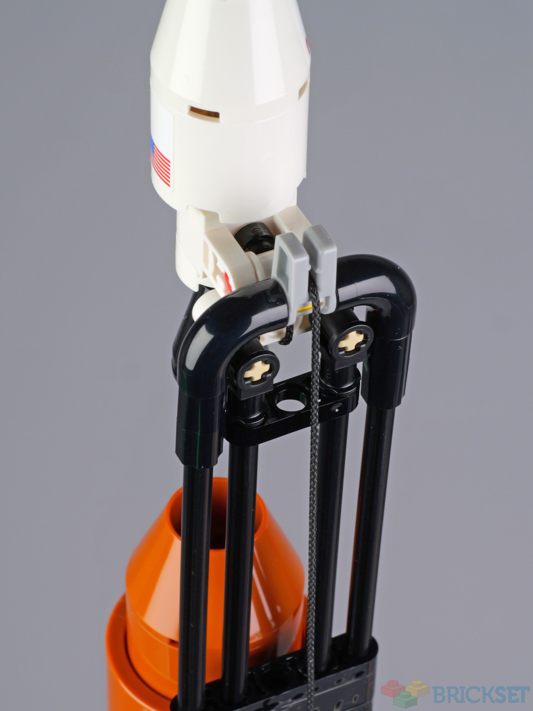 Then, as you continue to turn the lever, Orion accelerates upwards away from the dark orange core stage section. This is achieved with the help of the string and chain at the back.