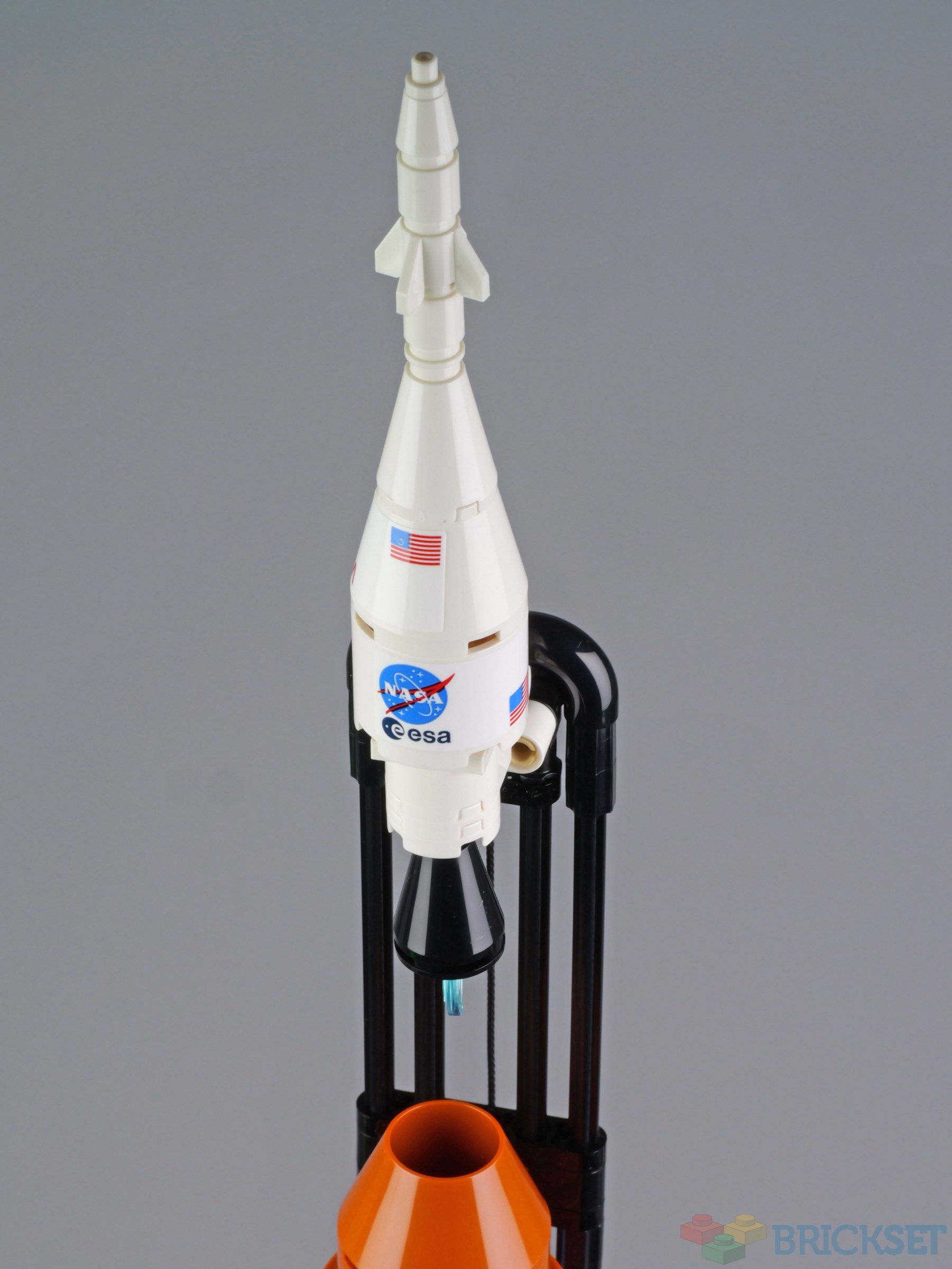 Before launch, the model stands 50cm tall, and the rocket looks pretty much like the real thing, as much so as can be expected with Technic. Stickers provide authentic details to Orion and the boosters, but it's a nuisance applying them to the latter because they go on the new 2x2 round pieces so have a hole in them to accommodate the pin hole on the side of the element. You therefore have to get them straight on the piece, and get the hole in them aligned around the pin hole.