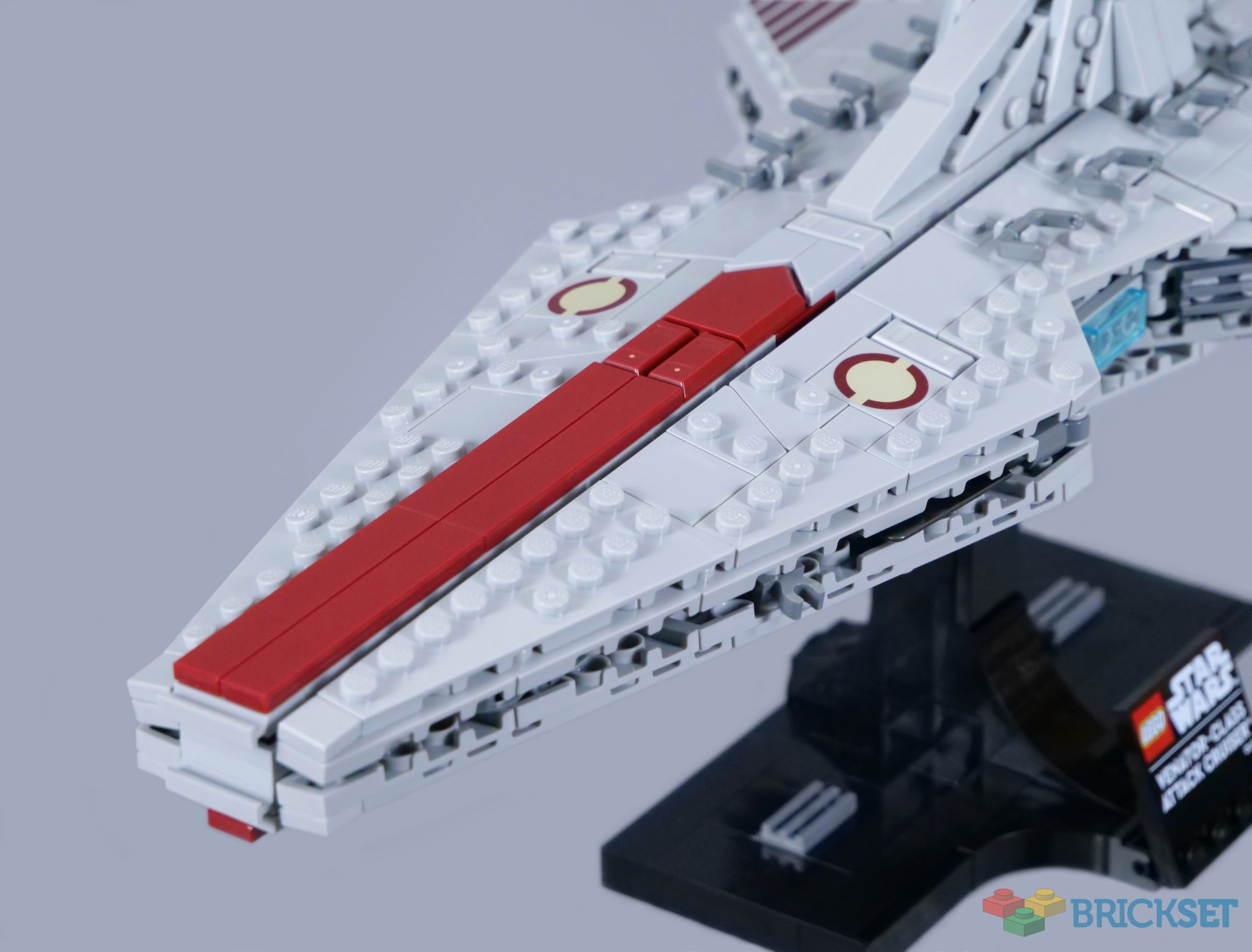 The pointed end of the dark red stripe is a little too sharp, but I am glad the feature is captured and without requiring any decoration or stickers. In fact, this set uses no stickers and the Open Circle Fleet symbols return from 75404 Acclamator-class Assault Ship.