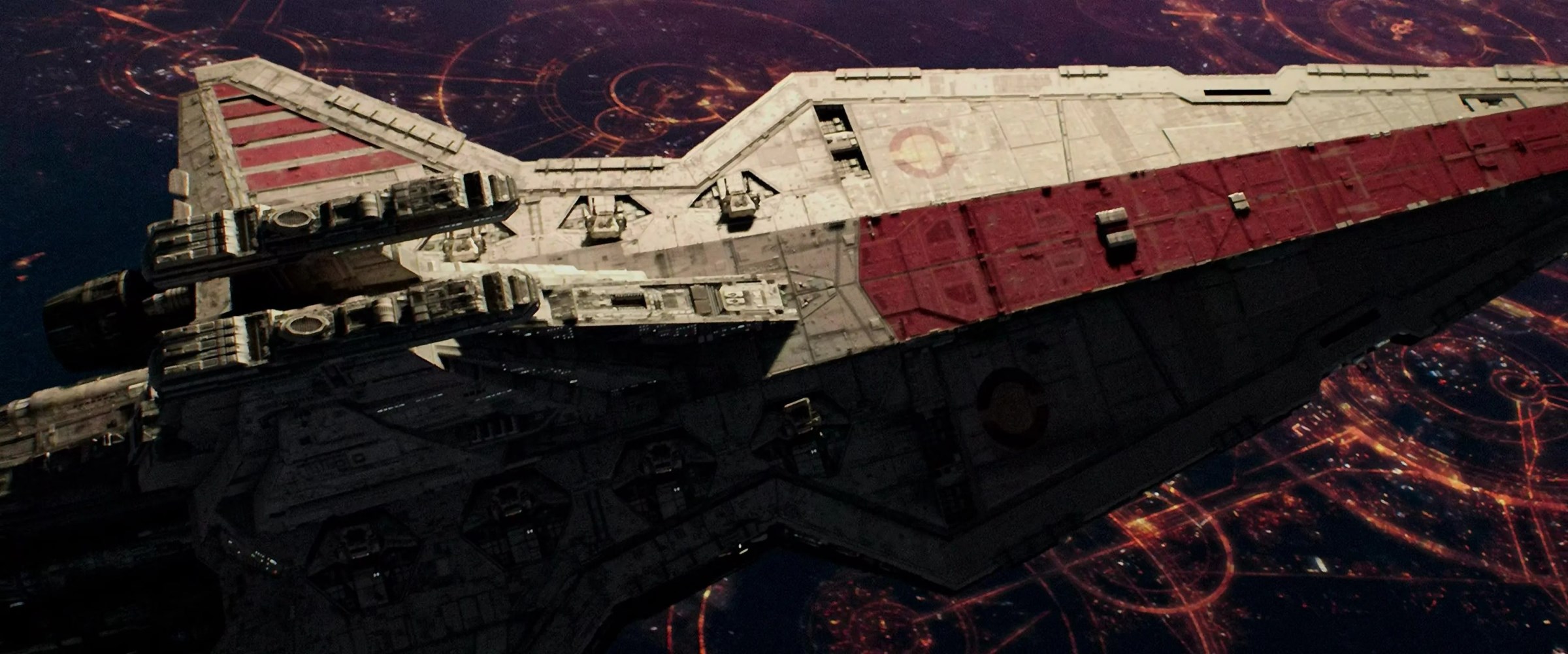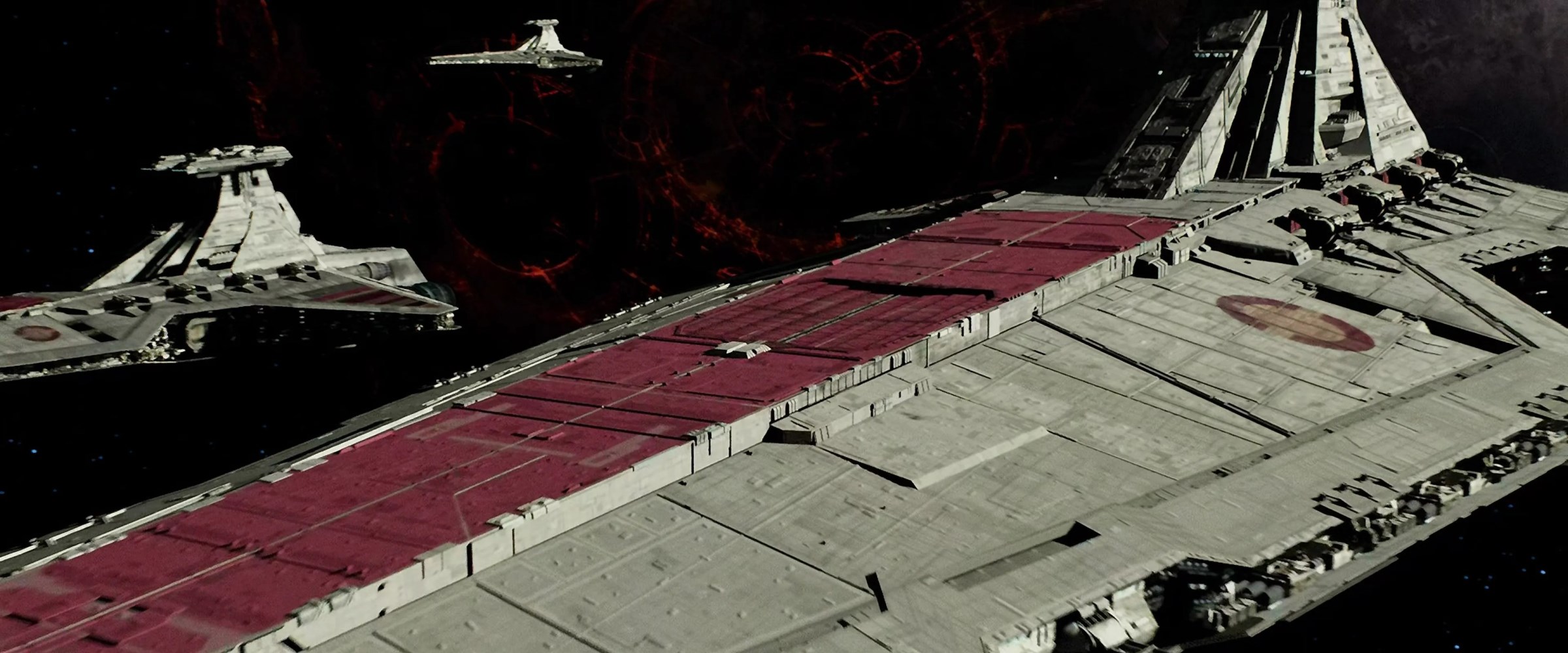 I can't think of this ship without hearing John Williams's tremendous score for the opening sequence of Revenge of the Sith :)